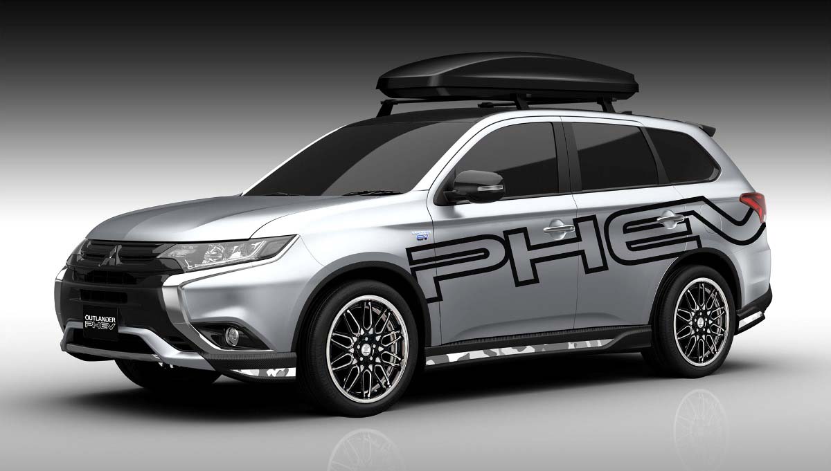 今年Mitsubishi以戶外休閒、露營為展出主軸,並以油電混合車Outlander PHEV和Delica D5車款為主角,分別推出Outdoor Gear Concept、Active Camper Concept兩種不同風格的4款改裝車來進行展示。前者,強調戶外休閒,展示車輛的車色皆採消光珍珠白塗裝,並在後視鏡、霧燈座邊框、前後保險桿、車身側裙、鋁合金輪圈等其它部件,加入鮮明的橘色增加車輛年輕活潑的外觀,再透過車頂增加行李架強調戶外休閒的風格。