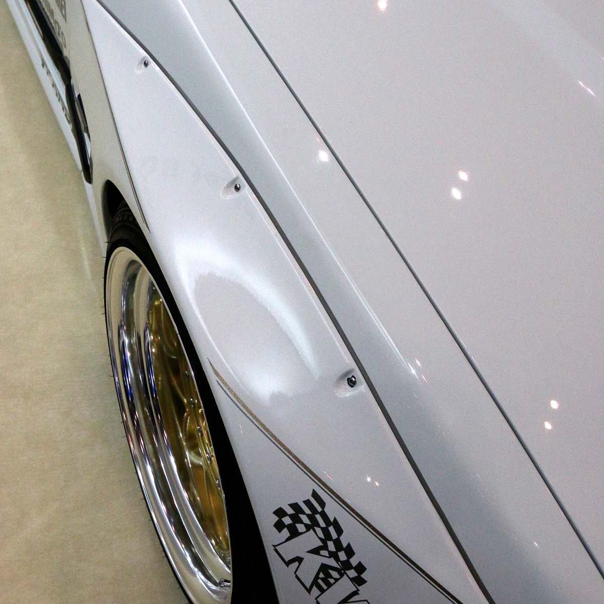 | 迎合原廠車身側裙與防撞飾板所完成的寬體爆龜,角度上明顯有別目前市面上常見的圓弧狀。 |