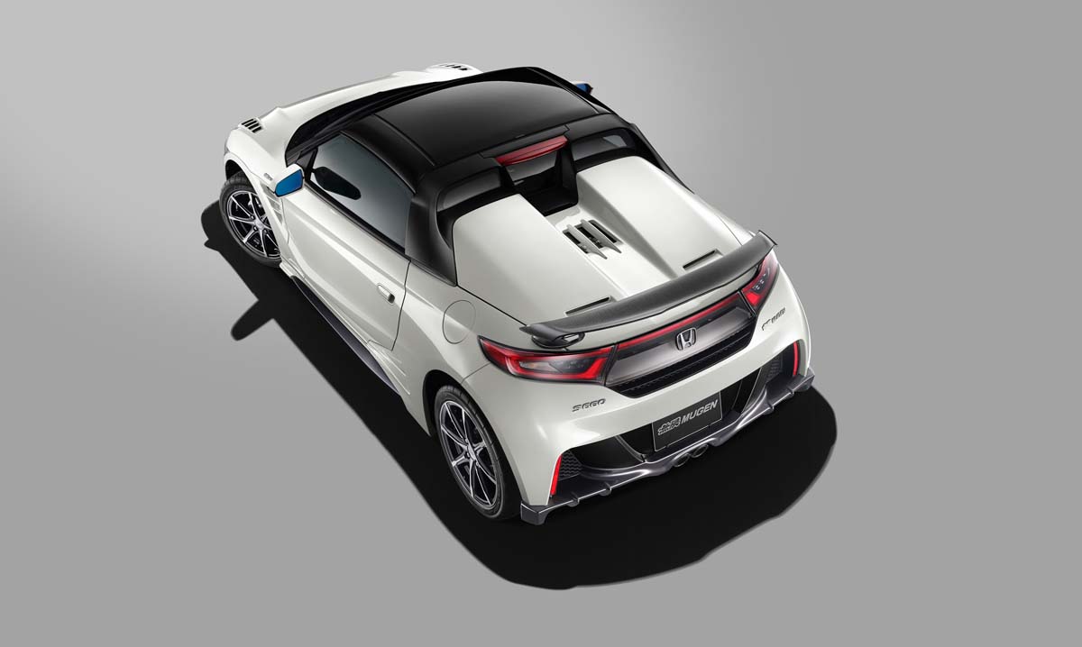另外一部則是名為Mugen S660,在車輛外觀改裝部份,已換上兩件式附下擾流版的前保桿、側裙、車尾部份則安裝可調式碳纖維大型擾流尾翼、後保桿也換上附擾流版樣式,原本軟篷的車型設定,Mugen為了改進整體車室隔音效果,換上SMC壓模技術製成的黑色玻璃纖維烤漆車頂。總重3.5公斤輕量化的引擎蓋,同時在左右兩側做了散熱口設計,車側葉子板加上散熱孔,除了可以增加引擎室的散熱外,也可以為車身造型帶來運動化的效果。
