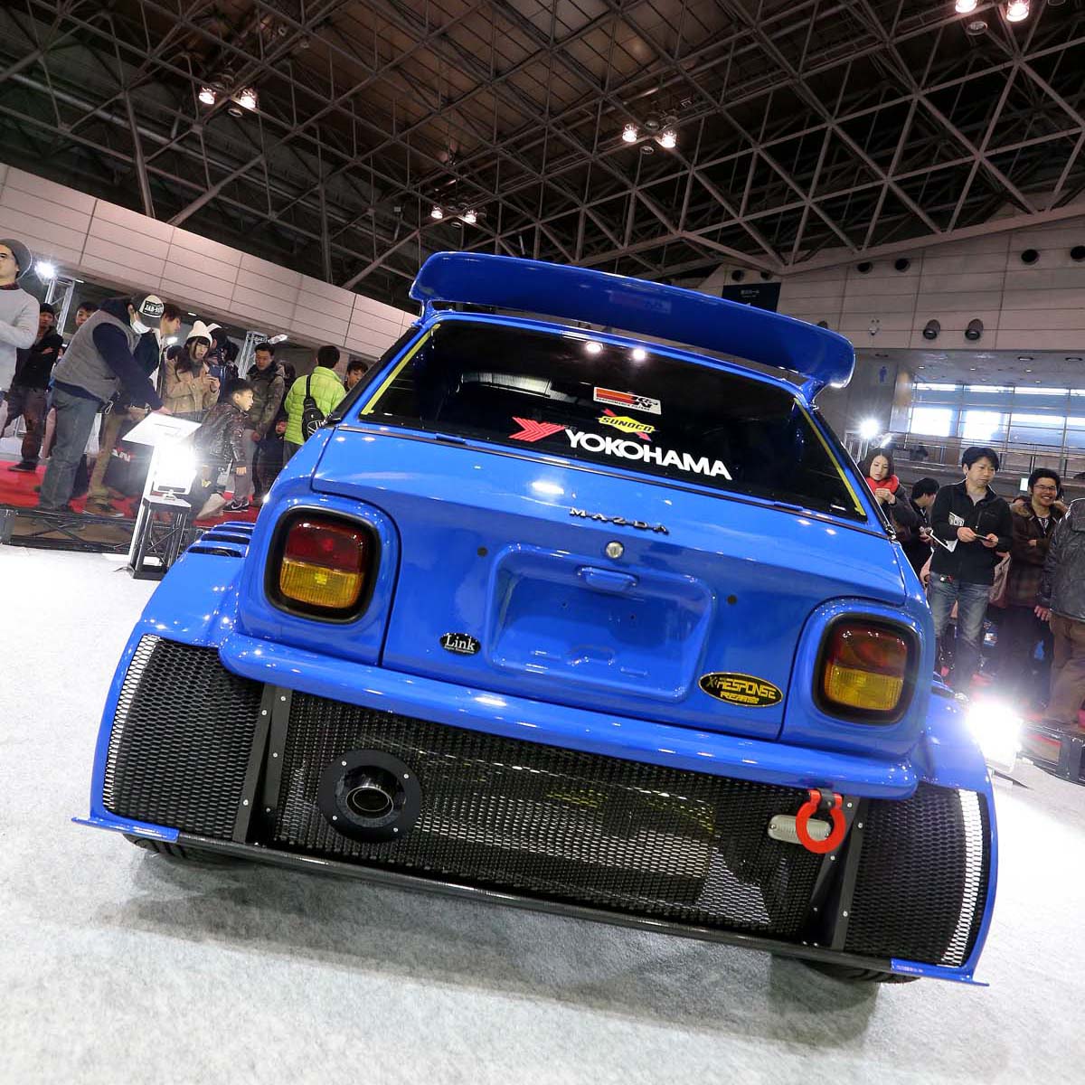 Chantez是Mazda在1960年推出的輕自動車,原廠359c.c. x2的雙轉子引擎僅有35ps/4.0kgm可悲表現,如果保存到現在搞不好連改裝的125都跑不過,因此雨宮老伯則是塞入與SA22C相同的13B自然進氣本體,並且搭配上RE雨宮的改裝最大出力直接上看280ps/27.5kgm,並且搭配上不到600kg的車體重量,加速性能應該是相當可觀。
