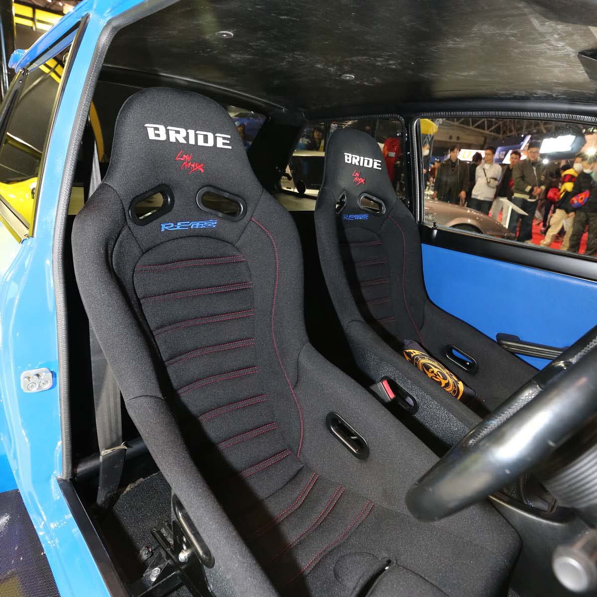 | 內裝最特殊的就是Bride Zodia的仿老式皮革賽車椅的編織方式,並且椅背上也繡上RE雨宮字樣表示專為雨宮老伯製作的特製品。 |