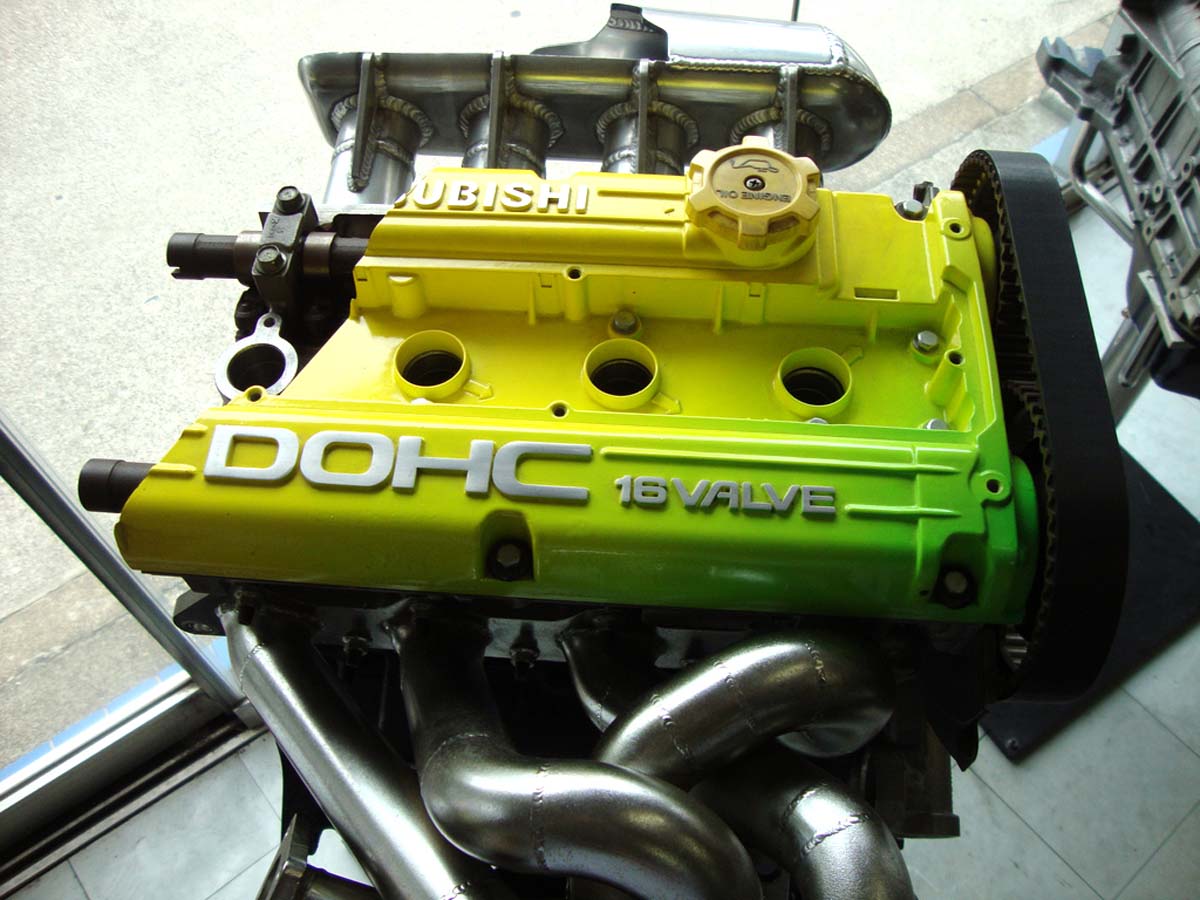 | 檸檬的綠漸層黃正是JUN的標準配色,自家的展示車上蓋也都會噴上這個標準塗裝,如果是跟JUN購入整具強化引擎,也可追加預算來購入這個性能保證的顏色。 |