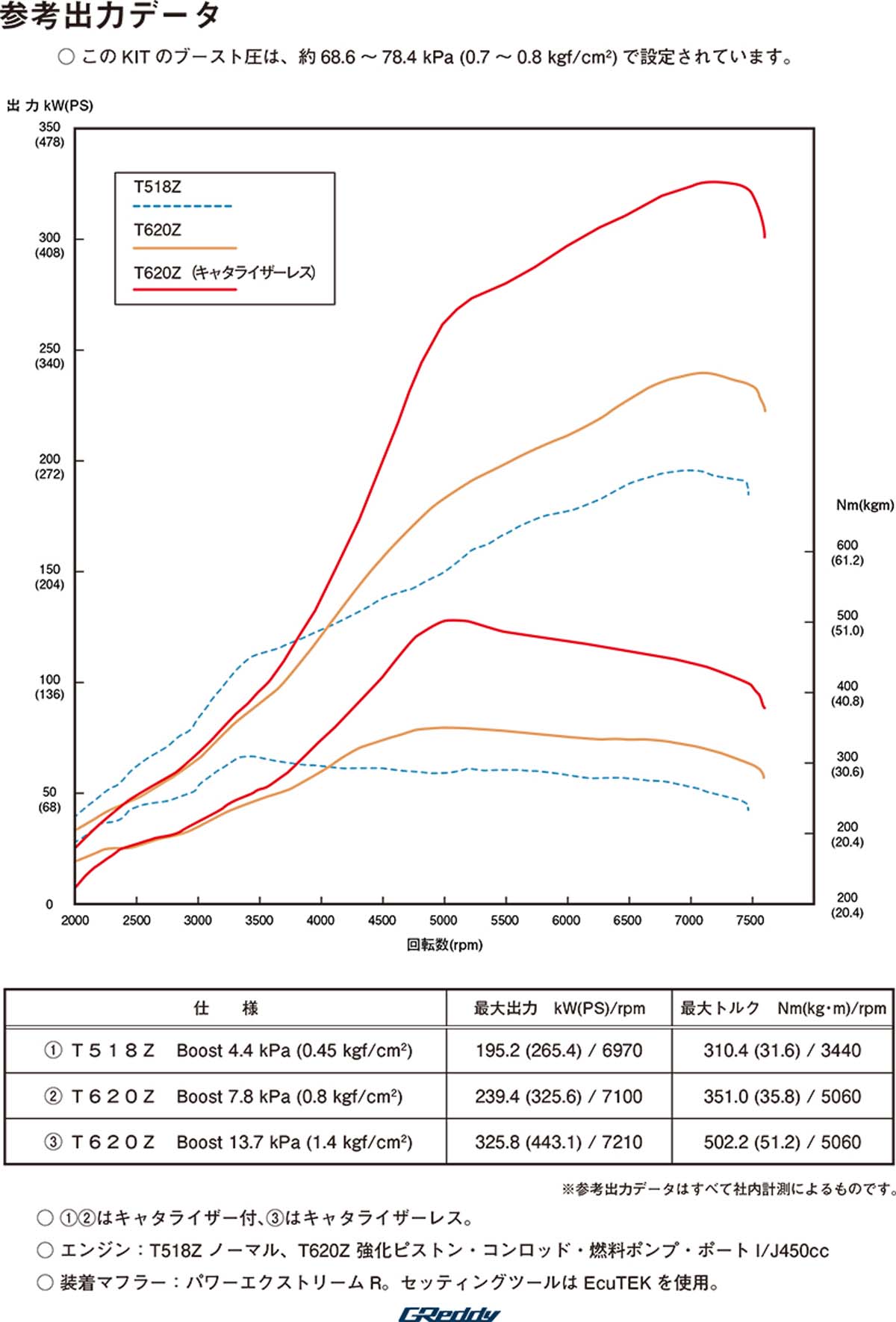 Trust針對FA20缸內直噴引擎在台灣目前來說,都是以T518Z為主的直上渦輪套件為主,根據Trust的資料表示,T518Z套件可對應原廠腹內,0.45bar條件下可做出265.4ps/6970rpm、31.6kgm/3440rpm的最大出力,動力反應及花費絕對是相當符合街道使用。
