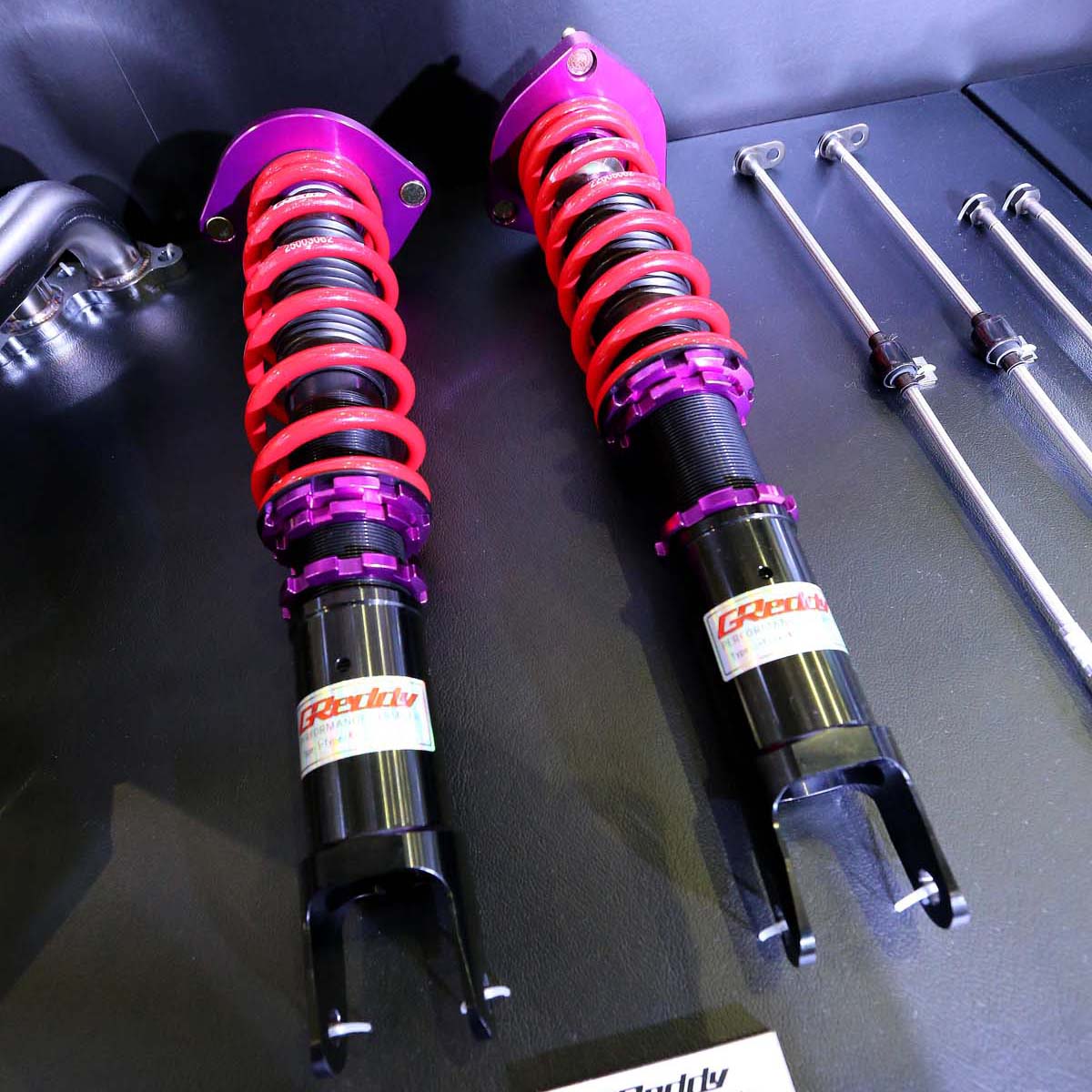 | 單筒式的GReddy Performance Damper Type-S避震器是目前Trust主力商品之一,32段軟硬可調整設計,可對對應街道及賽道上的使用,0.1m/s以下的低速閥門更可有效保持輪胎與地面的接觸。 |