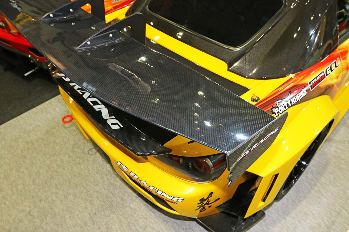 兩字,能夠被土屋圭市、織戶學及谷口信輝稱之為魔王的車輛絕對是具有相當水準,2009年開始推出的魔王系列,至今也經過不少進化,這次來到展場內的魔王S2000-GT2,利用2004年的AP2作為基礎,魔王風格相當濃厚的GT2寬體套件,前後單側都至少較原廠多出了200mm,輪胎尺寸更是一舉加寬到前後265mm的尺寸。