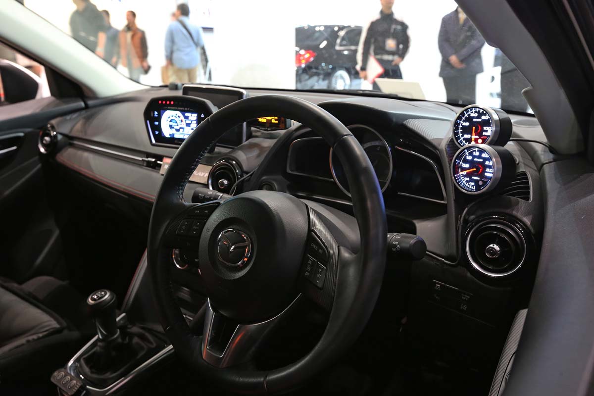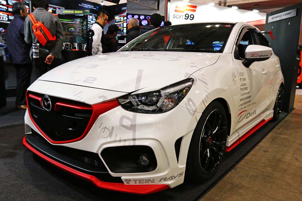 | Defi以新款Mazda 2為展示車,安裝上自家產品,來體現安裝於車上的視覺效果,而除了內裝看得到Defi賽車錶外,空力套件則換上Knight Sports的套件,變身為更具運動感的車型。 |