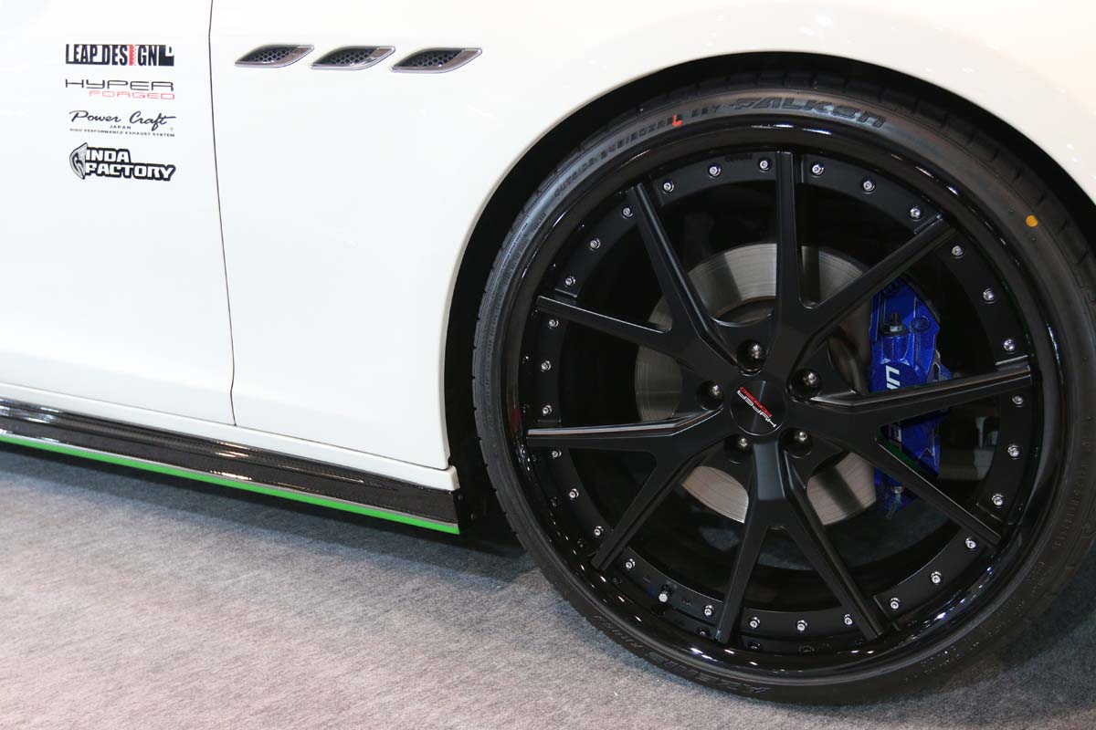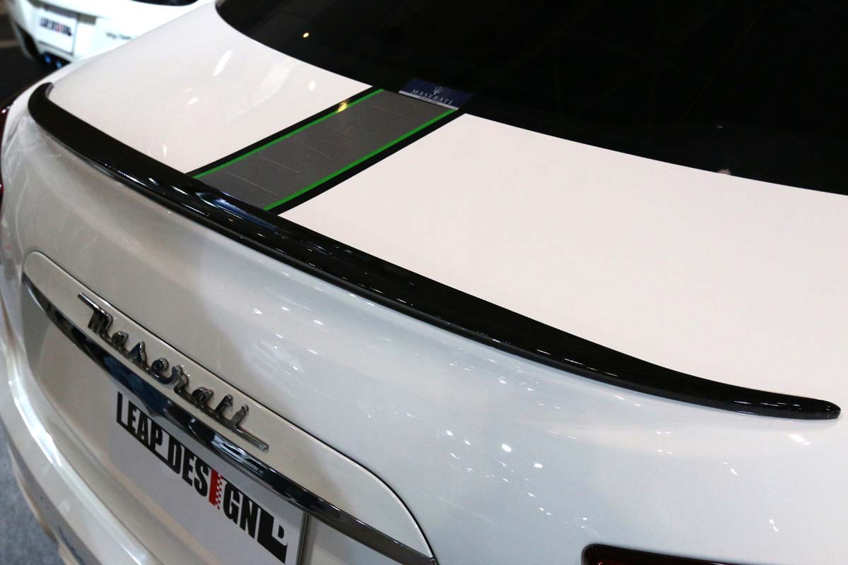 相對上千萬的入手價格,擁有Maserati特殊品牌形象的四門車型Ghibli,只要雙B中型房車的售價即可直接牽入門款回家,一推出隨即受到高端消費市場的喜愛,光是看到水箱護罩上那海神三叉Logo就只有爽字能形容,為了讓外觀兇悍的氣勢能夠再升級,日本改裝品牌Leap Design特別推出簡單升級套件,即使透過小小點綴也能有不一樣的感受。首先為了不變更原有空力套件外型,因此重新開發的碳纖維前下擾流、側裙、小尾翼與後下擾流都能直接安裝,既不破換任何車身結構,同時透過銀綠黑三色彩繪從頭到尾勾勒下呈現極為不同的武裝風貌。
