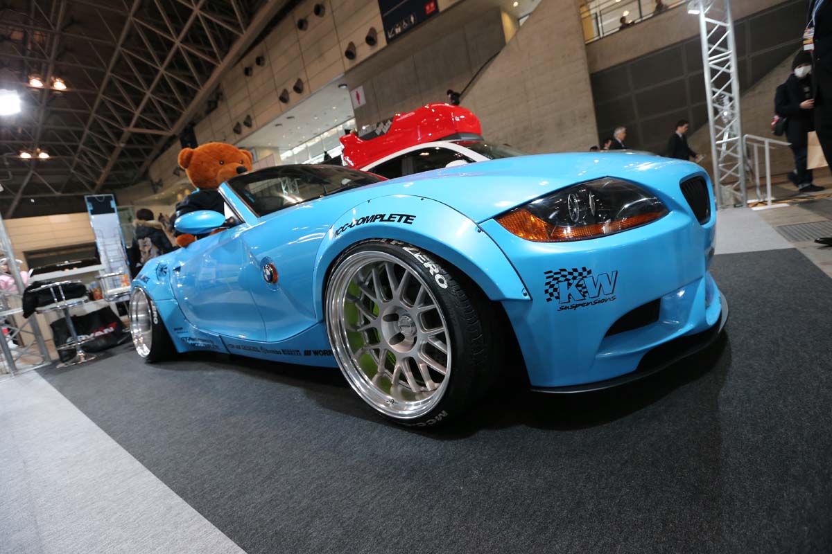 結合眾人之力所完成的作品往往能夠融合更多元素及優點,這樣是眼前這輛BMW Z4的獨到之處,為了在外觀上能夠把雙門車型的特色凸顯,同時營造更具線條的運動美感,為此Mcc Complete特別與LB Works及Next Innovation一同推出寬體空力套件,可以看見前保桿雖然只增加薄博一片的前下擾流,但是依照車身線條所開發的前葉子板爆龜,即使面積不大卻相當符合整體比例,側裙方面則只有小飾板結合後葉子板爆龜,而後保桿兩側飾板與小尾翼,簡單完成外觀開發的創新訴求,底盤方面,透過KW避震器有效將車身降至最低,並且以19吋Work M1R輪圈完全塞滿輪拱。