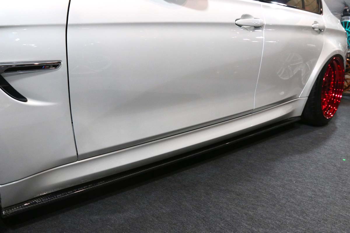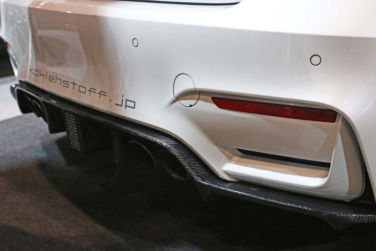 外觀升級雖然是最有效的視覺改裝方式,只不過對於操控來說相對也會有所影響,但是對於掛上M Power車款而言豈不就自廢武功,對此以歐系車款為開發主力的Kohlenstoff針對M3/M4開發運動化碳纖維小包圍,包含前下擾流、定風翼、側裙、小尾翼與後下分流器,而相較於外觀的變化,底盤升級的項目似乎才是這輛M3的重點,首先輪圈方面有Agio Precisione PKR 20吋或Pokal 19吋鍛造圈可以選擇,另外透過JRZ RS2 Sport與RS Pro懸吊與Stoptech多活塞卡鉗增強操控及制動力,動力方面則是換裝afe進氣系統來增加進氣效能。