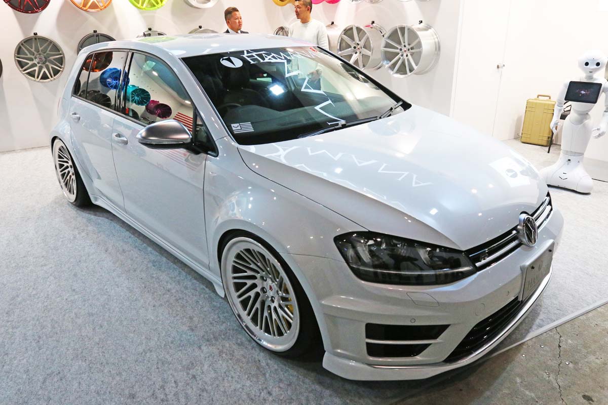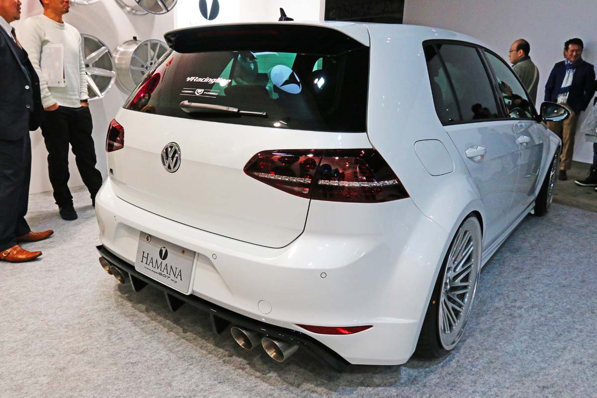 目前歐系車款最主流的改裝方式就是來套小包圍,再換上大腳輪圈降低車身就是標準的改裝範例,不論是GT跑車或小鋼炮都很適用,然而今年改裝廠Hamana特別Vossen Japan輪圈進行合作,而眼前所見的M.Benz AMG GT就是透過安裝前下擾流來提升車頭穩定性,並且更換具氣流導孔的側裙有效增加車側線條,車尾部分除了在電動尾翼上黏貼上小鴨尾之外,原廠保桿兩側額外開孔並結合後下分流器徹底展現GT跑車應該有的格調,不過相較於原廠胎圈設定,Vossen所提供的20吋鍛造輪圈則給予外觀更豐富線條。另外,相對於平價的VW Golf 7 GTI,Hamana則是換上全新前保桿附前下擾流,結合側裙與後下分流器讓外觀不再過於單薄,而19吋輪圈配合車身降低藉此營造個性化改裝風格。