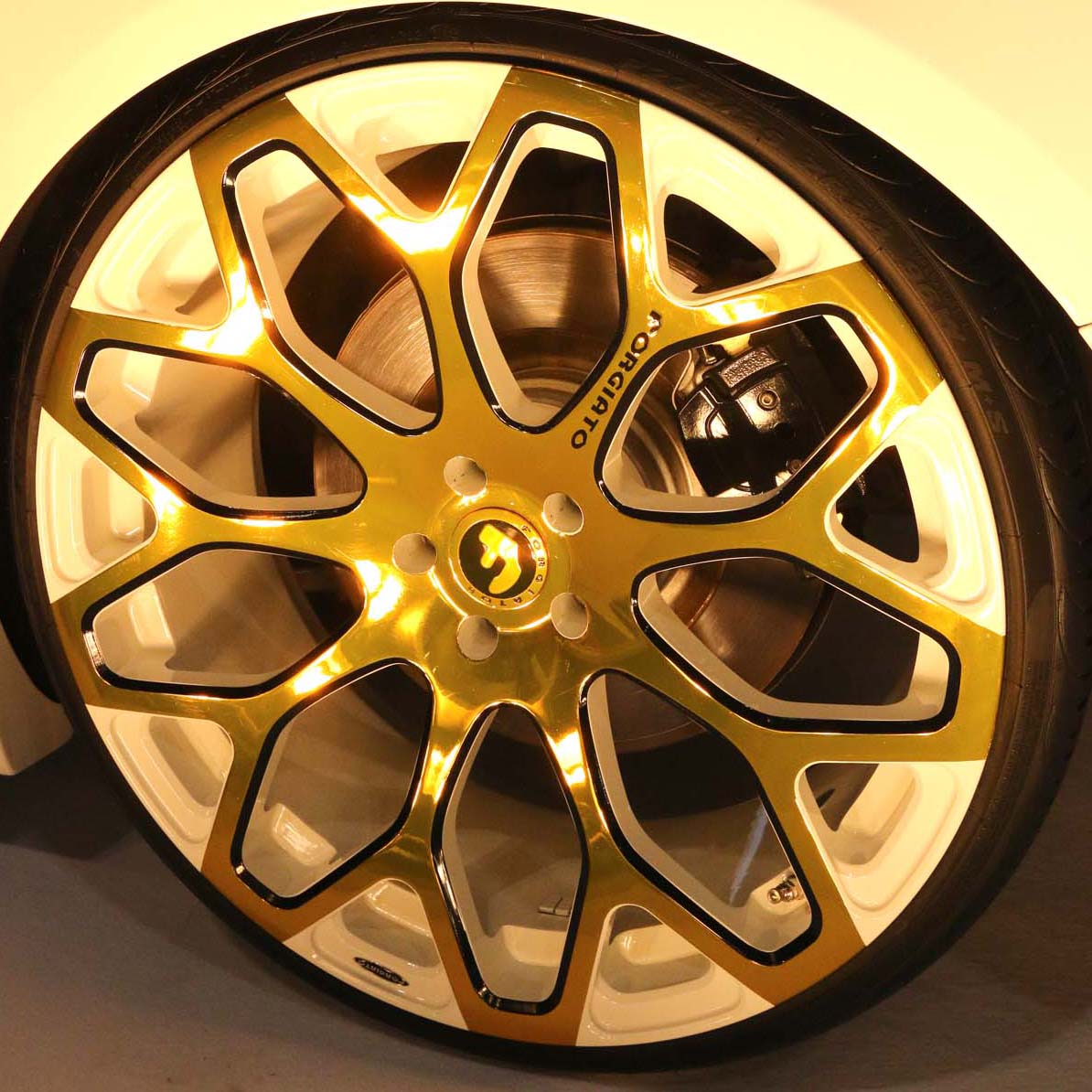 | 金色爪面的Forgiato Tessi-M24吋鍛造輪圈,彷彿藝術品般讓人愛不釋手。 |