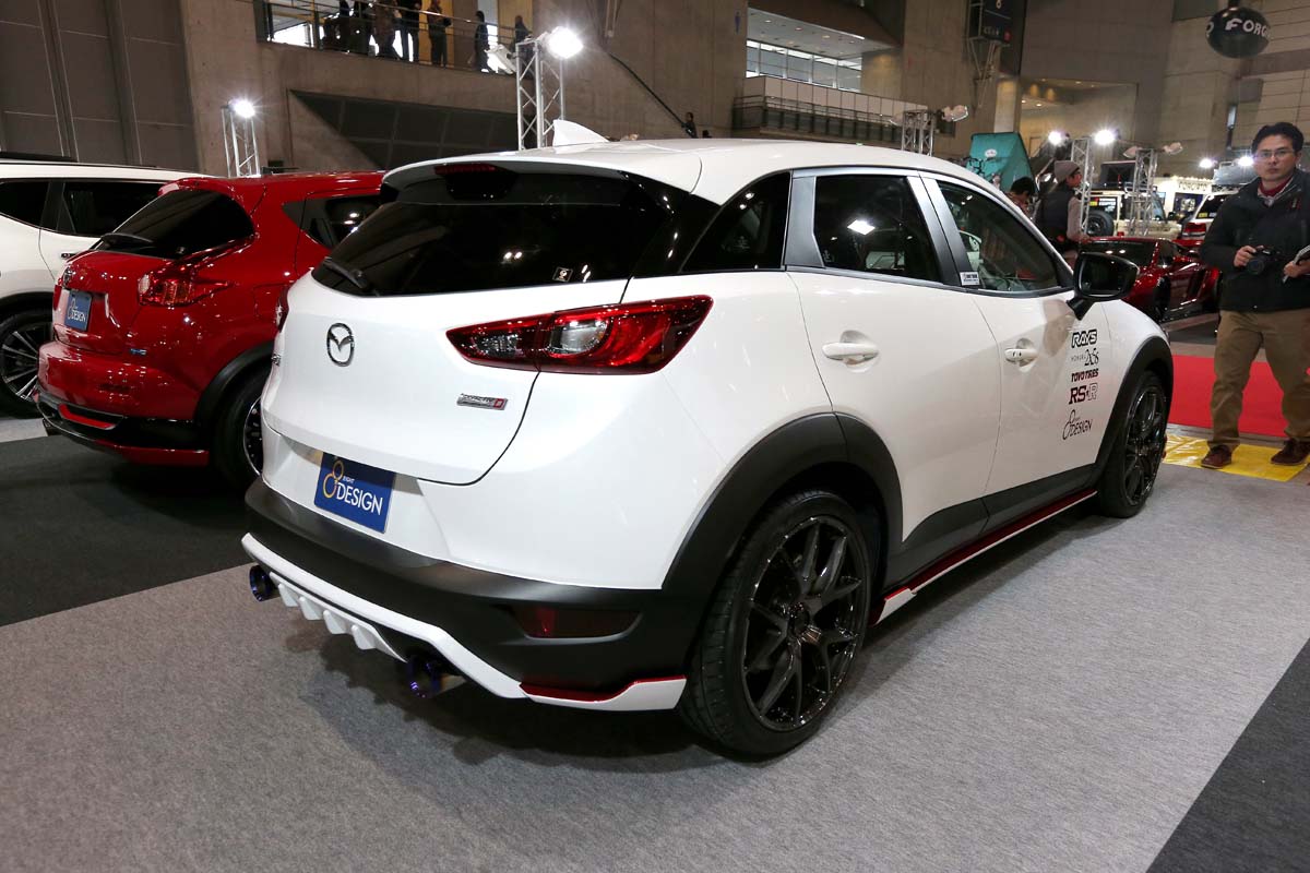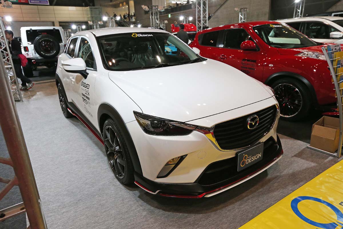 隨著現代人的用車型態逐漸改變,加上前幾年油價高漲,導致所有車廠重新修正推出低油耗的車型,而向來受到消費者歡迎的SUV車型也因應市場需求改為輕型Crossover,目前已在台灣開始販售的Mazda CX-3在日本市場也同樣受到關注,為了打造不同的外觀風格,由改裝廠8 Design所推出的空力外觀,透過簡單的小包圍即可直接安裝在原有外觀上,同時又不破壞原廠件,成為目前改裝市場的主流,包含前下擾流、側裙、後下擾流,加上Rays 19吋輪圈與225/40 ZR19性能胎,營造高性能跑格。