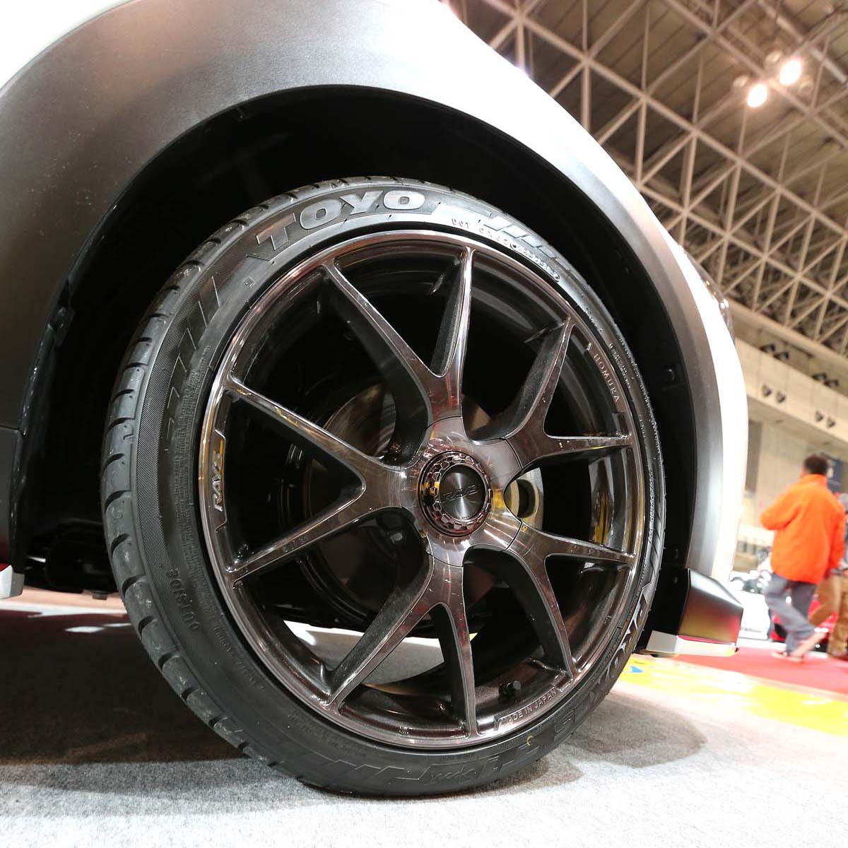 | 19吋Rays輪圈雖然夠搶眼,但是過於簍空的煞車系統似乎也應該同步升級才夠看。 |