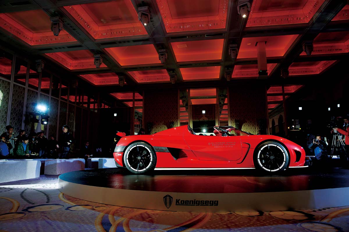 當然Hypercar品牌登場得有一定的架勢與排場,Koenigsegg自然有它的辦法,在品牌發表會的現場,展示台上陳列的是在2011年推出的Agera R,這部車不僅全球限量18部,更在2011年時創下了金氏世界紀錄──0~300km/h~0的過程僅花費21.19秒的時間就完成,這個紀錄直到四年後才被Koenigsegg One:1以17.95秒的成績打破。