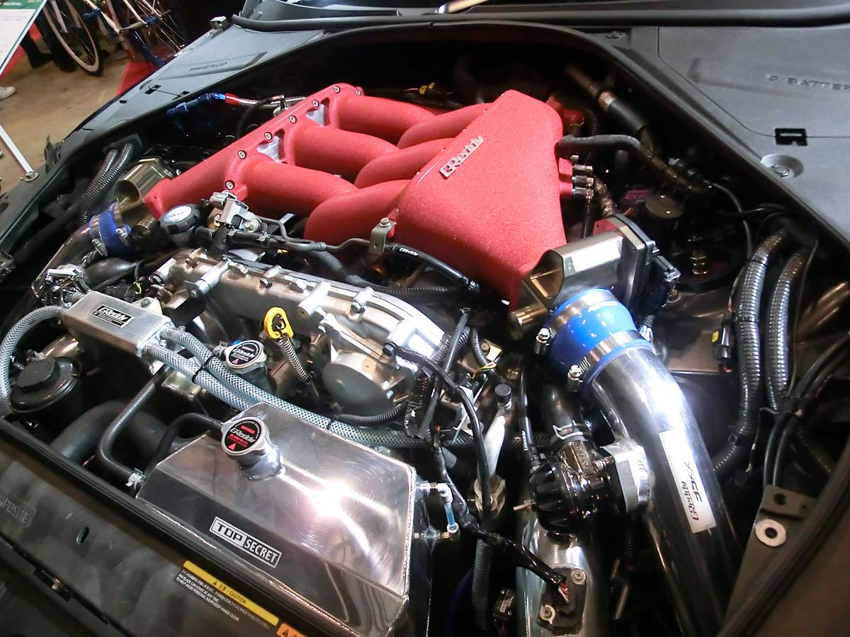 而另一輛則是爆甩箱根山道的GReddy 35RX Spec-D,3.8升的VR38DETT強化下,搭配兩具Trust TD06SH-20G渦輪機,超過1000ps的動力在箱根山路上既然以240km/h時速甩過彎道,並且車手川火田真人更表示這具引擎最強的不是動力,而是超越過去SR或是2JZ的耐用度,並且完工至今已經邁入第3年,一次都沒有拆解整理過。