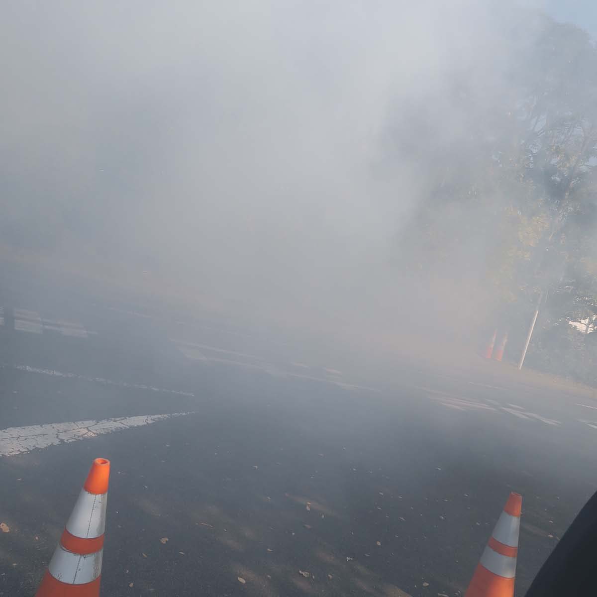 | 這就是D1 GP廠車通過後所留下的輪胎煙霧。有時候運氣好還可以被削掉的胎皮給射到臉 |
