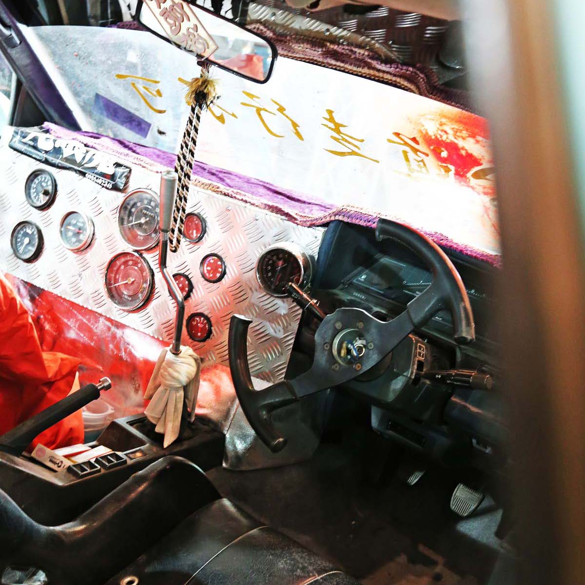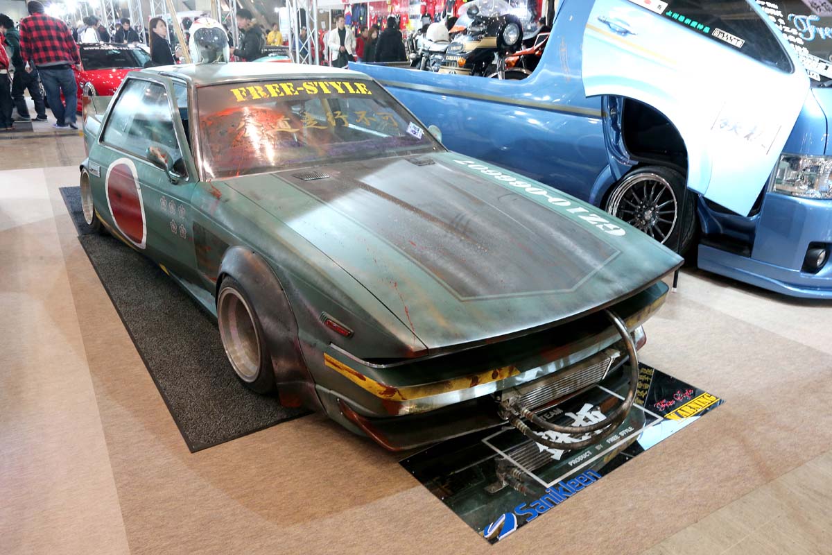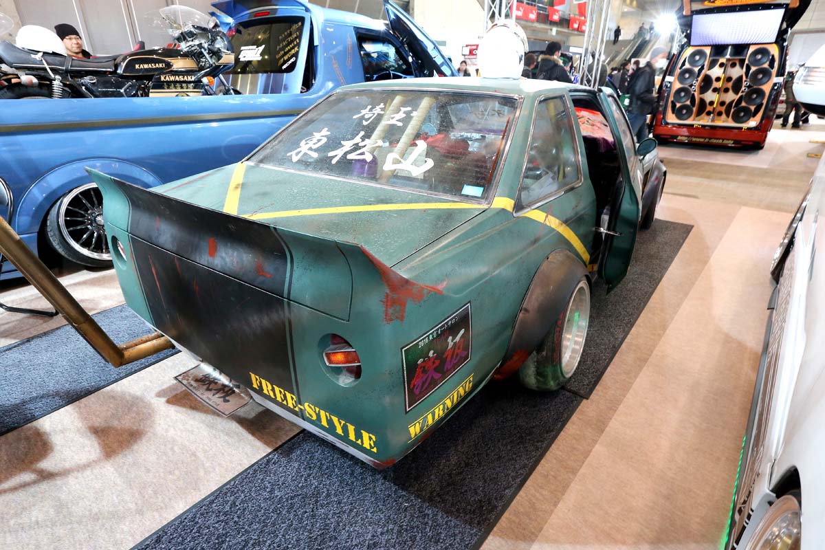 這家位於琦玉縣的店家,店名就叫「Team鐵板」,顧名思義就是鈑烤專門科,另外人家的空力套件都是塑膠打造,唯獨Team鐵板堅持要呈現平成車輛的風格,全車套件都用上鐵板製作,這輛Toyota GZ10這是作品之一,其實最早Team鐵板也只是好玩心態來製作,畢竟這並不是這次車展的主力,沒想到這個看似丟在路邊幾十年感覺的GZ10,烤漆、內裝甚至到玻璃都經過處理下,現在已經是日本媒體爭相報導的議題。