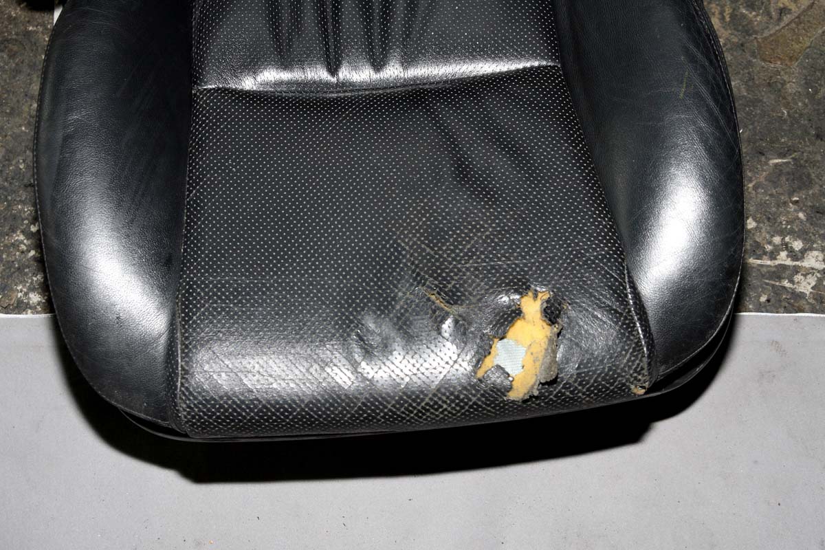 首先要介紹的是關於座椅的修復,座椅之所以會破損,常見的問題是摩擦或汗水浸漬,導致皮面破損,大家可別輕忽汗水的威力,在達人多年的翻修經驗中,與大腿下緣常接觸的座椅破損情況,可是相當常見的問題,因此建議有運動習慣的車主,運動完後上車時最好能在椅面上鋪個乾毛巾,減少椅面沾附汗水的機會;另外,不小心掉到椅面菸灰,所造成煙洞也是座椅常見的破損問題。