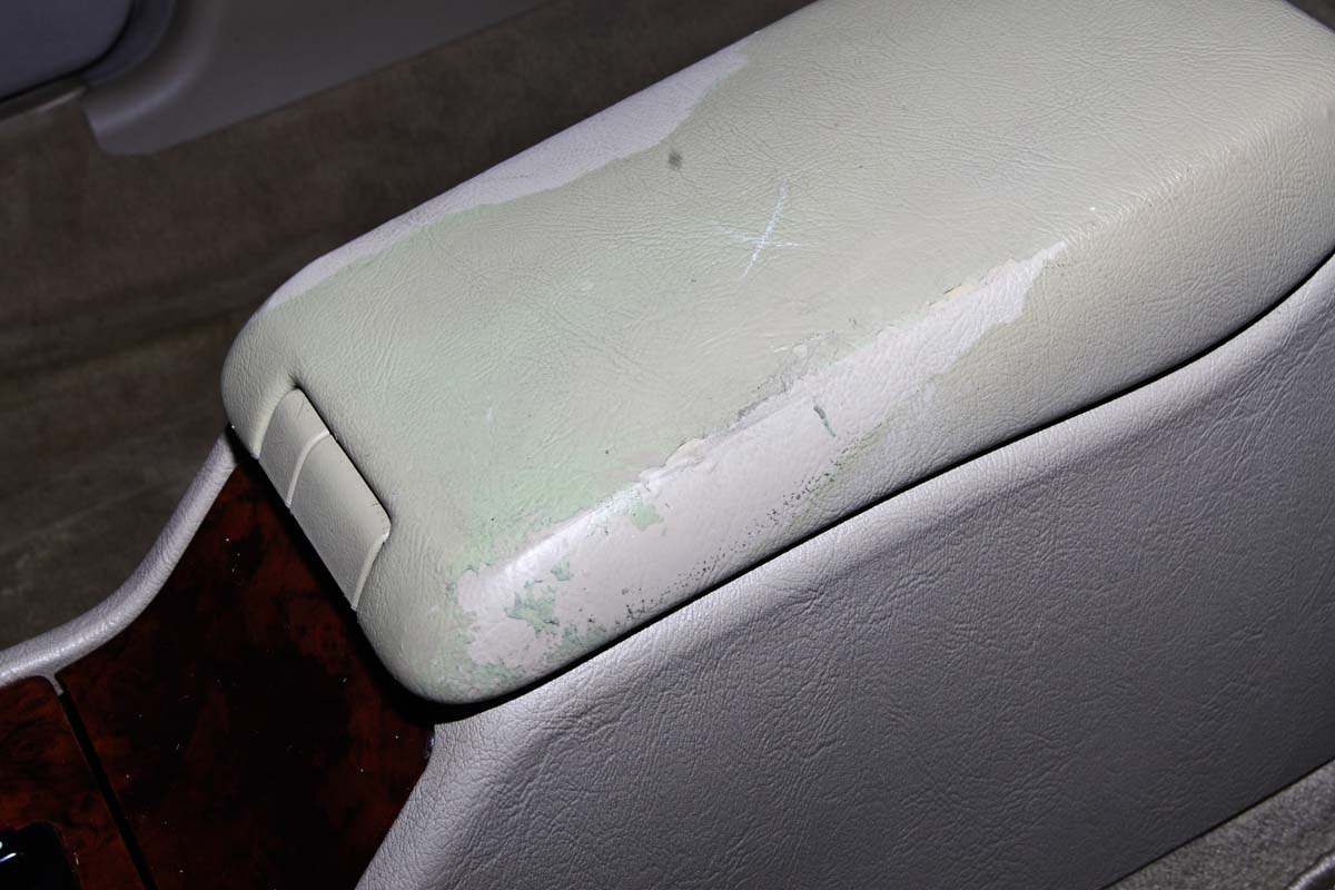 | 中央扶手上的皮面也很怕汗水,只要皮面沒有破損的太嚴重,只要拆下重新烤漆即可回復原狀,若情況嚴重的話,則需整面皮革換新才能翻修完成。 |