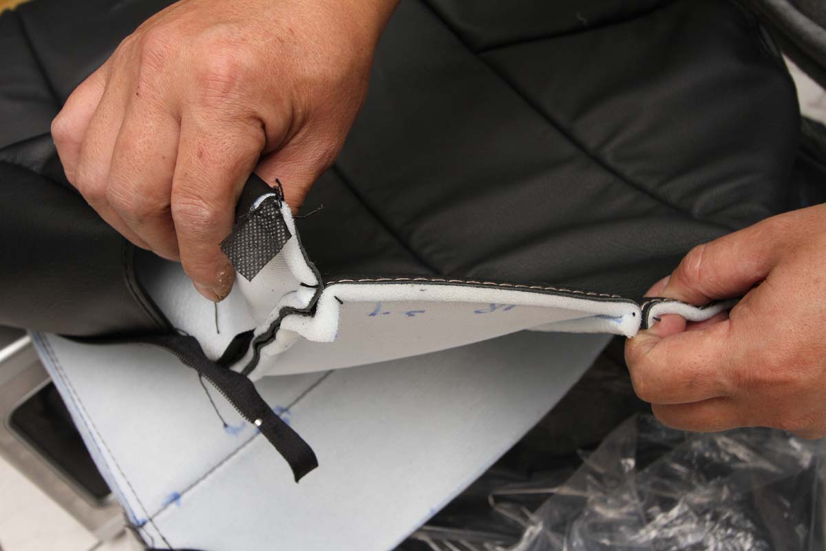 而在採訪的過程中,車泰汽車皮椅設計的掌門人-廖弘軒,也進一步的向筆者表示,部分具備座椅側邊氣囊的車款,這些座椅的皮面在安裝氣囊處都有特殊的縫線設計,可有效導引側邊氣囊爆炸時的位置,使氣囊能在正確的地方爆炸出來,因此當更換原廠皮面時,就必須依循原廠設計,注意該處的皮面厚度、磨擦包覆層與縫線設計,如此才能確保行車上的安全。