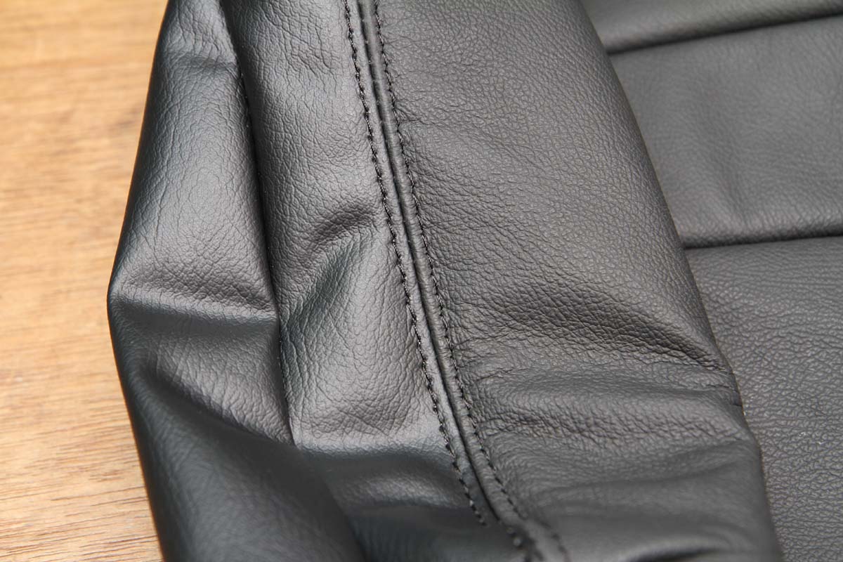 | 在車泰這裡皮料的材質可以依據預算,調整南亞人造皮料或真皮來翻修座椅,廖弘軒建議與人體接觸的地方可以使用真皮,至於側面與背面則使用人造皮即可,就向圖中縫線右側為真皮,左側為人造皮,就可兼顧預算與乘坐透氣性。 |