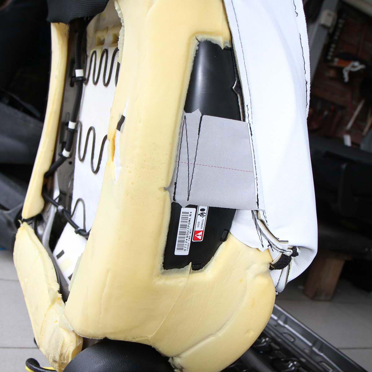 | 有些搭載側邊氣囊的座椅,在更換座椅包覆布面/皮面時,要特別注意該處的皮面厚度、磨擦包覆層與縫線設計,如此才能確保氣囊能在正確的地方爆炸出來。 |