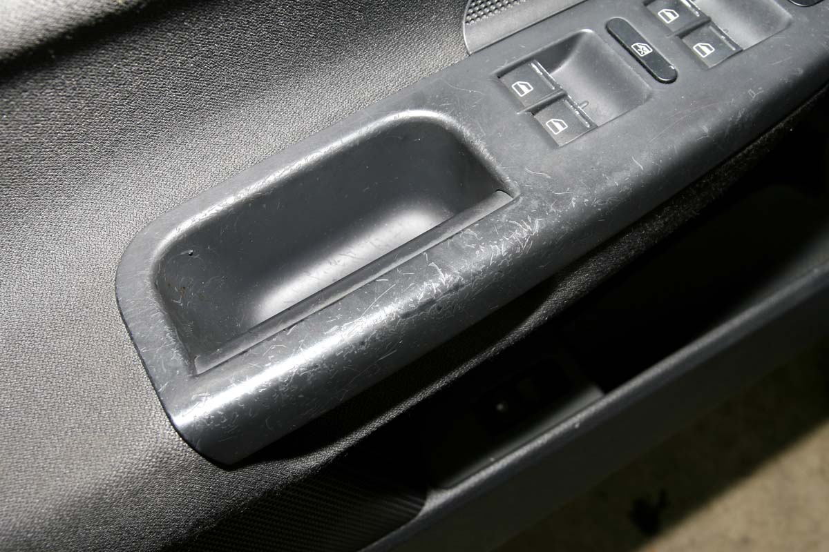 | 許多歐系進口車為環保考量,門板上的塑膠品烤漆與布面黏膠,在車齡逐漸增加後,會開始出現破損與掉漆的問題,大大影響美觀。 |