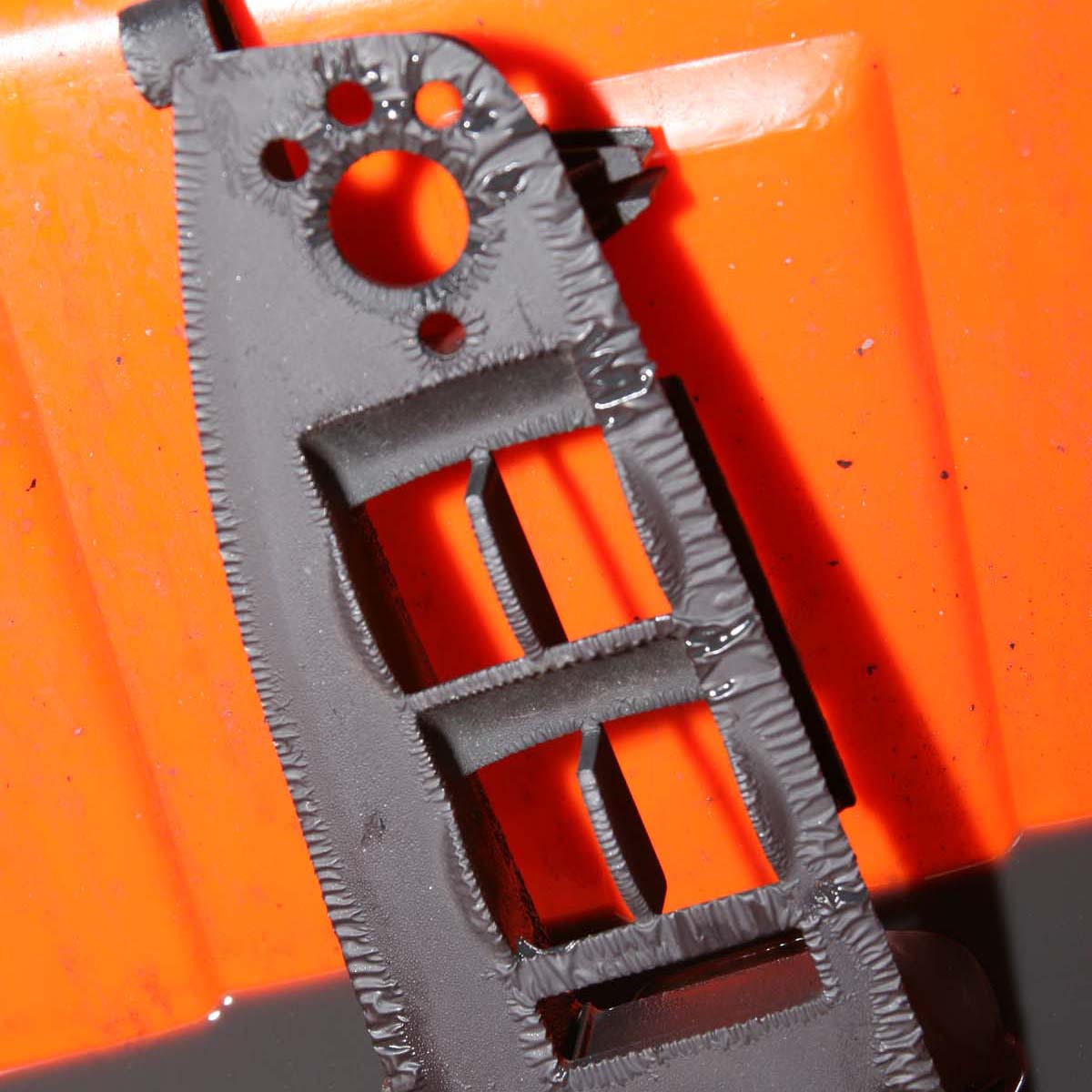 | 塑膠品表面烤漆在重新上漆前,須先用不傷塑膠的藥水將烤漆「咬掉」,該藥水是青山累積多年後的經驗調製而成,如此重新上漆後的漆面才能避免再發生掉漆情形。 |