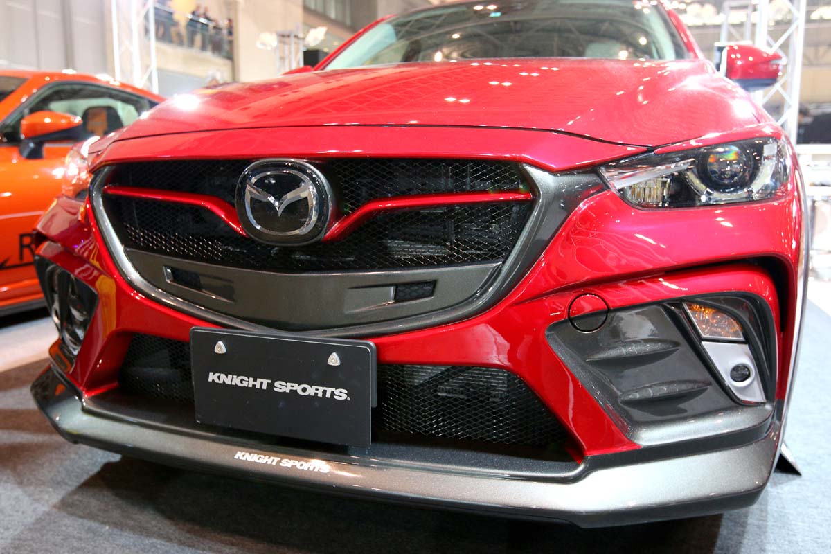 火紅色的車體塗裝正是KNIGHT SPORTS最愛的色系,代表著更熱情的風格,可看更換前後保桿及尾翼的CX-3,整體侵略感顯得強烈無比,恰到好處的燈眉讓眼神更顯銳利,車體補強件部分目前僅提供基本的引擎室拉桿,KNIGHT SPORTS表示畢竟是新車系,許多車主對於螺絲的拆卸有著特殊的堅持。