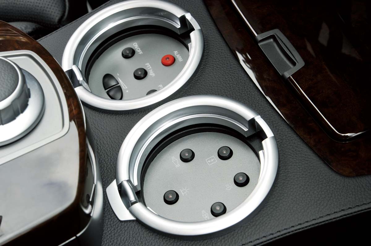 | X5 Security Plus特殊的控制介面也隱藏於置杯架內。 |