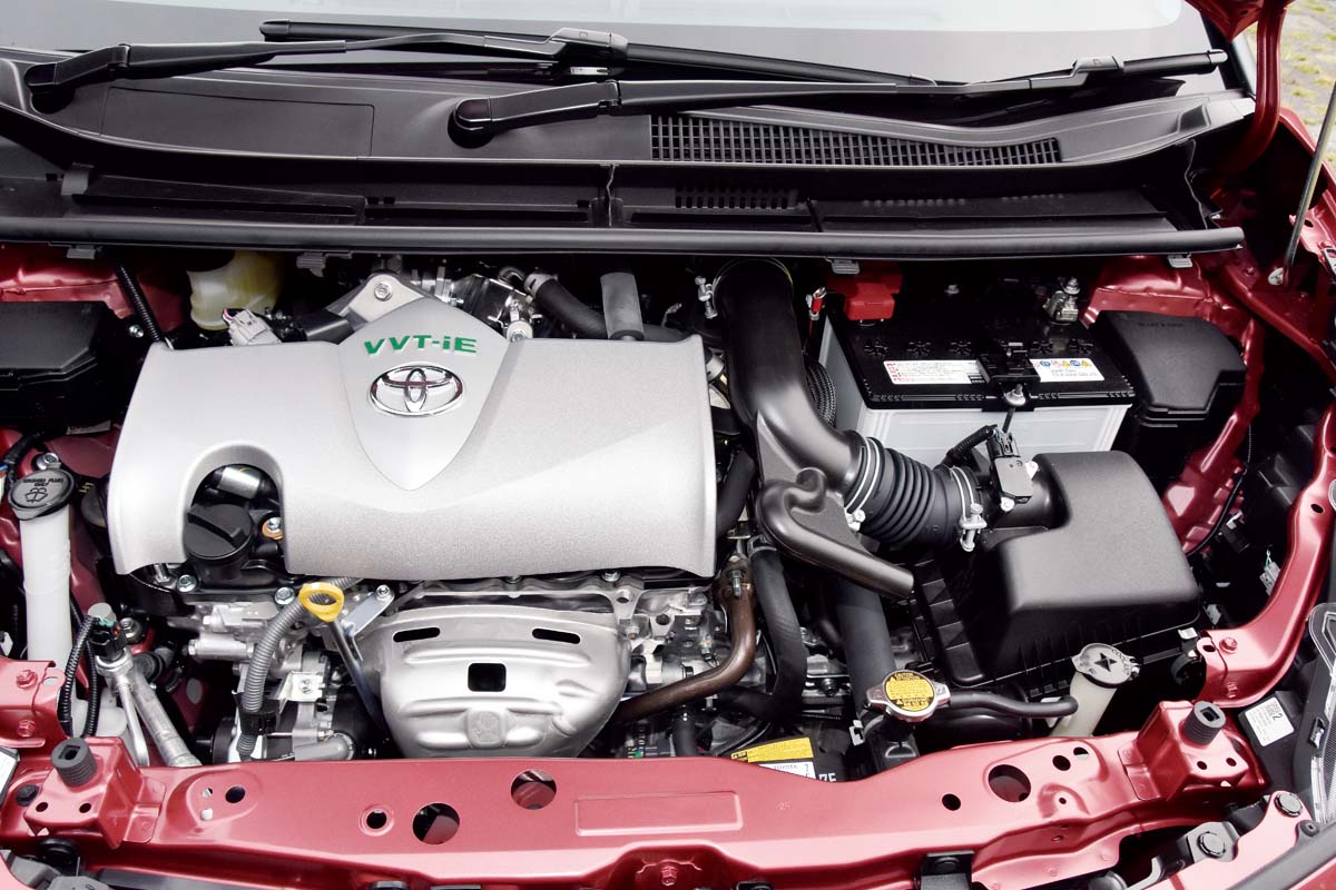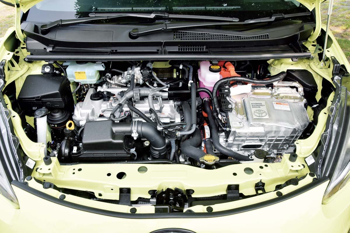 | 純汽油引擎版本的引擎室空間較為餘裕。由於缸徑和衝程的調整,動力更勝油電混合版本。 |