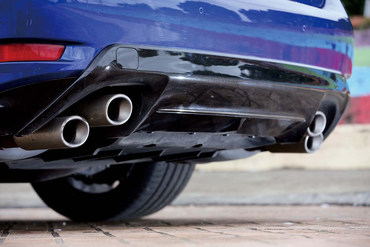 | 後保桿下方除設計有分流器外,左右兩側的圓形四出排氣尾管更是高性能輸出的表徵。 |