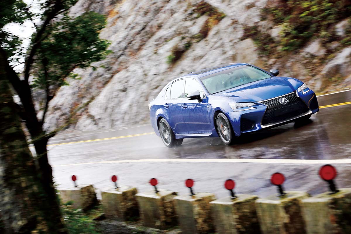 在硬朗懸吊以及清晰路感回饋與精準轉向反應特性下,使GS F在山路彎道中有著如魚得水般的順暢、快活。靈活明快的車身動態加上支撐性十足的懸吊,使其在重心轉移的過程中既俐落迅速又穩定,進出彎道不拖泥帶水、一氣呵成;當然這樣優異的操控性,功勞完全來自於出色的紮實底盤設定,儘管對應477.3匹的強猛動力也絕對夠格,即便關閉動態穩定控制系統進行激駕,在極限前的車身動態也同樣容易預期與掌握,尤其靈活又滑溜的車尾調性,讓人在高速彎道中能以略為滑移的姿態出彎,然後安穩地再催加油門衝刺而去,這樣的駕馭快感與操控樂趣,GS F可說演出完全到位。