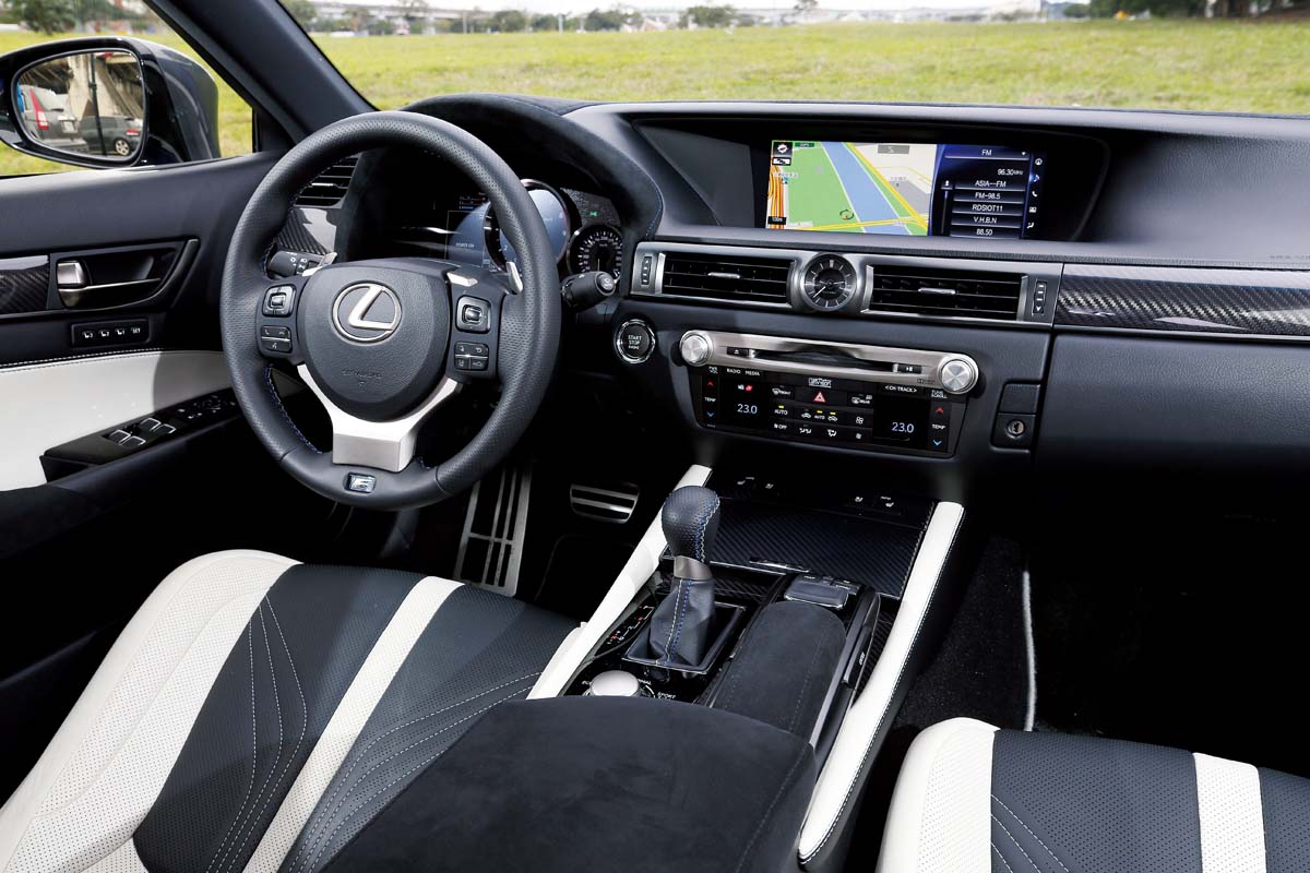 | GS F駕駛座艙在麂皮、鍍鉻件的鋪陳下保有Lexus貫有的豪華特質,但也透過碳纖維飾板以及F專屬式樣配件來營造性能氛圍。 |