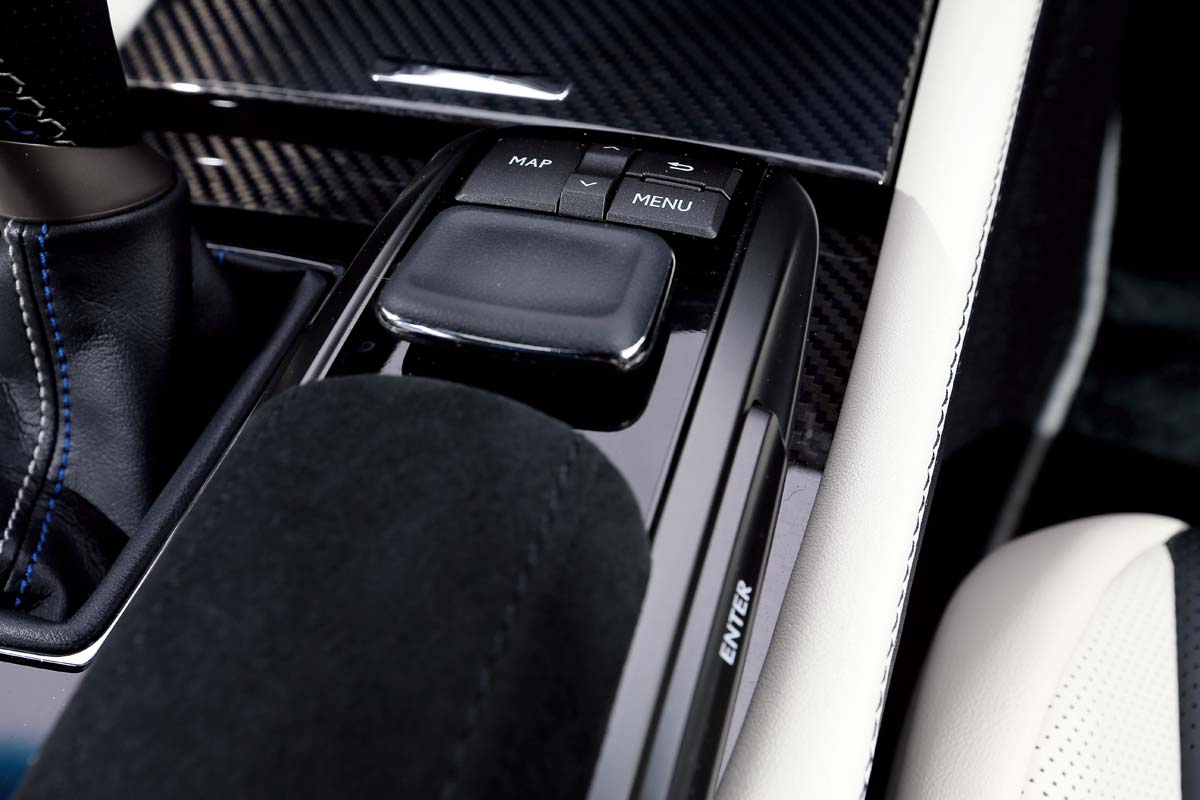 | 車上配置了TVD主動式扭力分配差速器,讓車輛在彎道中加速時,能以每秒1000次的頻率偵測車速、G值與輪胎速度,並進行後軸左右兩輪的扭力分配,來增加過彎的穩定性。 |