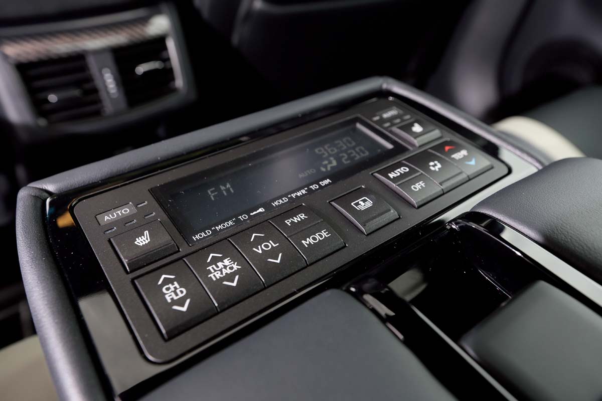 | 在性能氛圍下也不忘尊寵後座乘員,中央扶手處設置有可獨立控制音響、空調及通風座椅的按鍵總成。 |
