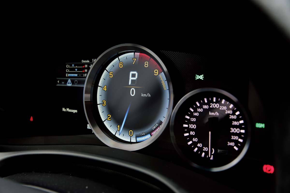 然而坐在車艙內,最令人滿意的是除了Mark Levinson頂級音響系統所帶來高音質聽覺饗宴外,若想要再聆聽GS F那迷人的引擎動力聲浪,只需要將駕駛模式切至Soprt S+模式,即能進一步將車尾後方的排氣聲浪導入車室內,讓人盡享V8 NA引擎那渾厚高亢的聲浪所帶來的感官刺激。