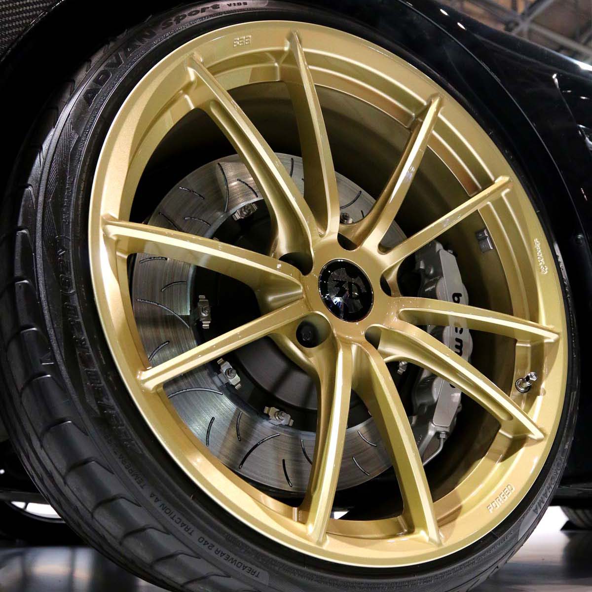 | 小小增加一片側裙雖然對於空力效能影響並不大,但是更豐富的車側線條恰好與金色輪圈相呼應。 |