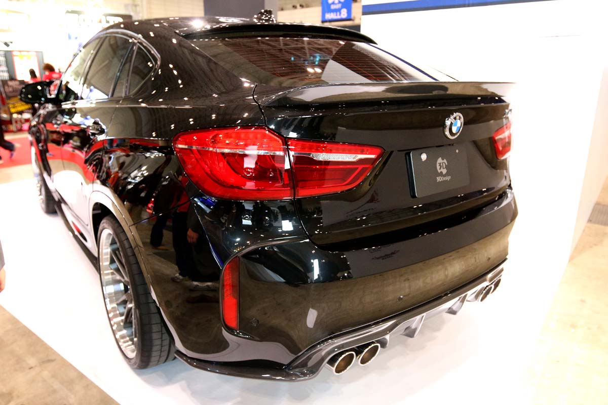 車尾方面,除了清楚看見小鴨尾與尾翼立在尾箱提供下壓力,全新開發的後保桿,不僅增加分流器抑制車底亂流,兩側所增加的曲線看起來更加立體。除了外觀方面的升級,目前3D Design還推出排氣尾段,有效增加12.5hp還能控制噪音量(98db/5000rpm),至於懸吊及胎圈方面則同樣提供升級套件。看完了M4升級套件,3D Design同樣展出X6空力升級式樣,包含前下擾流、側裙、後下分流器與小鴨尾強化外觀,加上22吋鍛造輪圈讓SAV跑格一覽無遺。