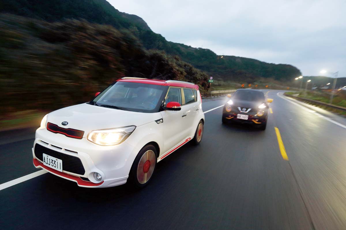 Nissan Juke於2016年1月推出個性特仕車,讓原先肌肉感十足的車身線條,多了個性化的裝扮。加上小改款以後標配的多媒體觸控螢幕,整體來看賣相確實相當誘人。而在1.6升渦輪與自然進氣兩種動力間,這回我們邀請到在價格與油耗都更加親民的自然進氣版本,一起參與這場選拔賽。自2014年底Kia重新回歸以來,Soul就一直是產品線中難以忽略的存在。前驅系統搭配2.0升自然進氣,讓身形方正的Soul性格中呈現出實用卻獨特的複雜性格。究竟方正的車身能否帶來更優異的空間表現?而這回參加評測的Soul震撼版本,能否一次擊潰群敵,震撼編輯部的靈魂呢?讓人相當期待。