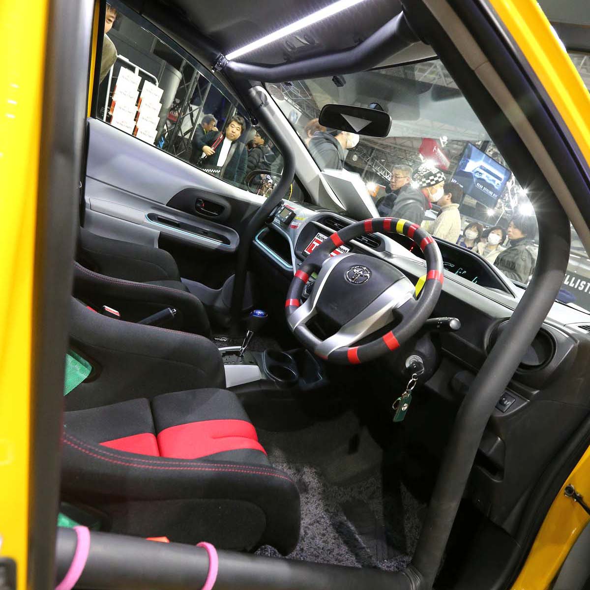 | 這部Prius c廠車,是TRD打造來準備參加TGR Rally Challenge統規拉力賽事之用,底盤已換上了針對越野賽設定的懸吊系統,車室內焊接上防滾桿,並加裝下護板,輪圈則換上Rays Te37 Grave。 |