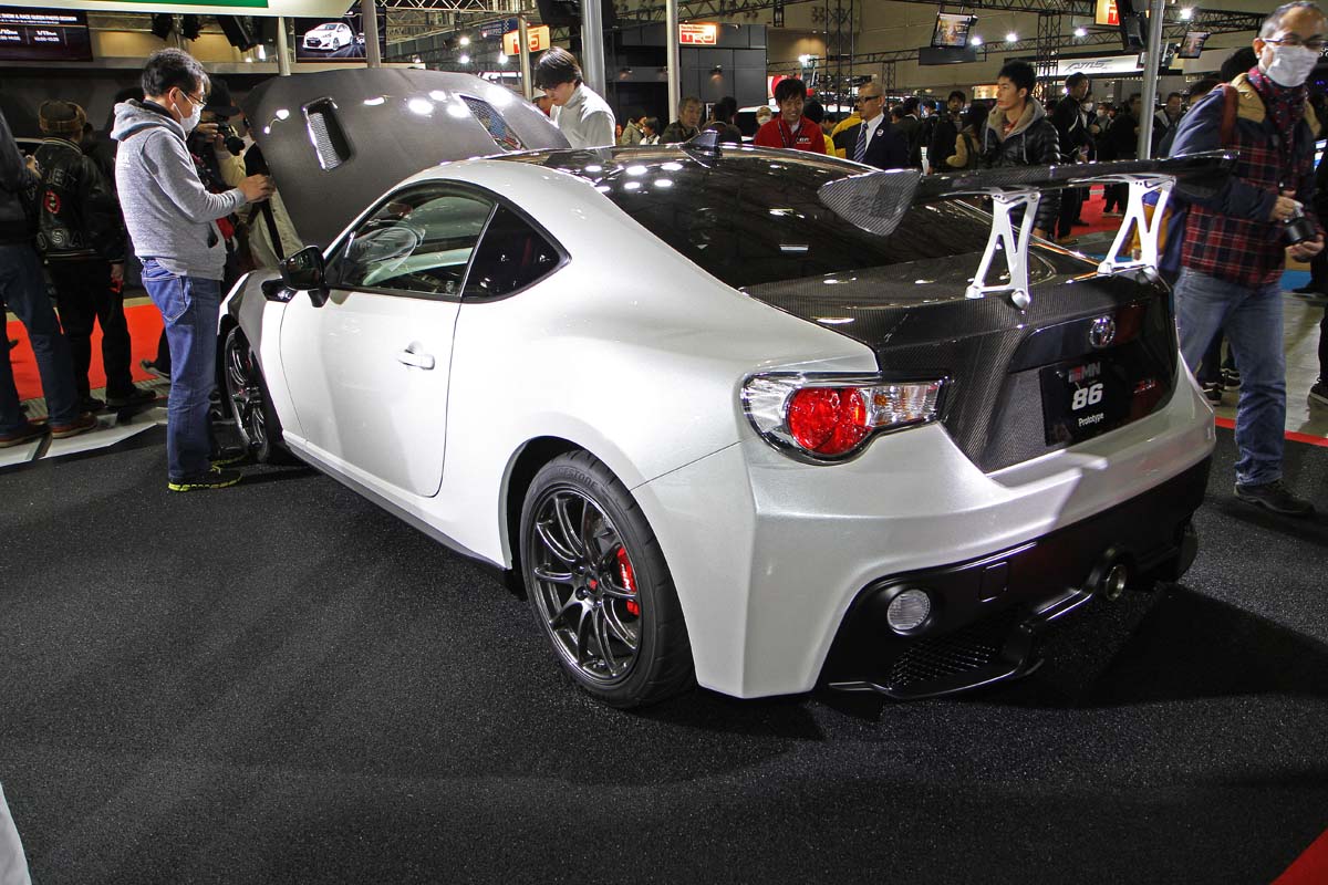 在Toyota的攤位內,除了上述幾款車外,還有一些比較不受到矚目,卻很有特色的改裝車款,例如這部名為GRMN86 Prototype的改裝概念車,從外型來看與一般市售版的86沒有多大的分別,只針對車身鈑件加裝小幅度改裝的空力套件,不過其緣由卻非如此簡單,這部車的開發是Gazoo Racing為了將Nurburgring耐久賽86廠車的研發技術,轉化到市售車的一部試作車款,目的是希望能藉此開發出效果良好的改裝套件。