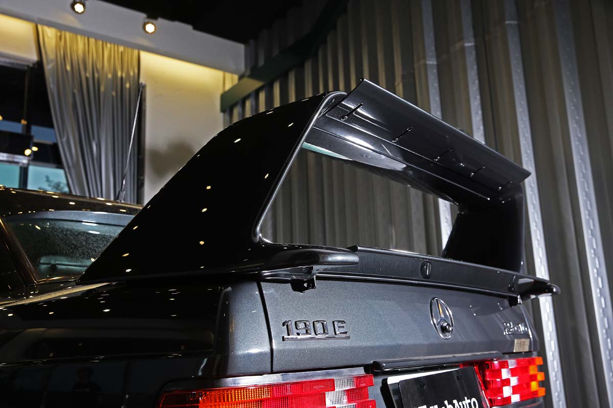 | 雙層大型尾翼,透過特別向後移以增加車尾最佳下壓力,這也是190E Evo II外觀特色之一。 |