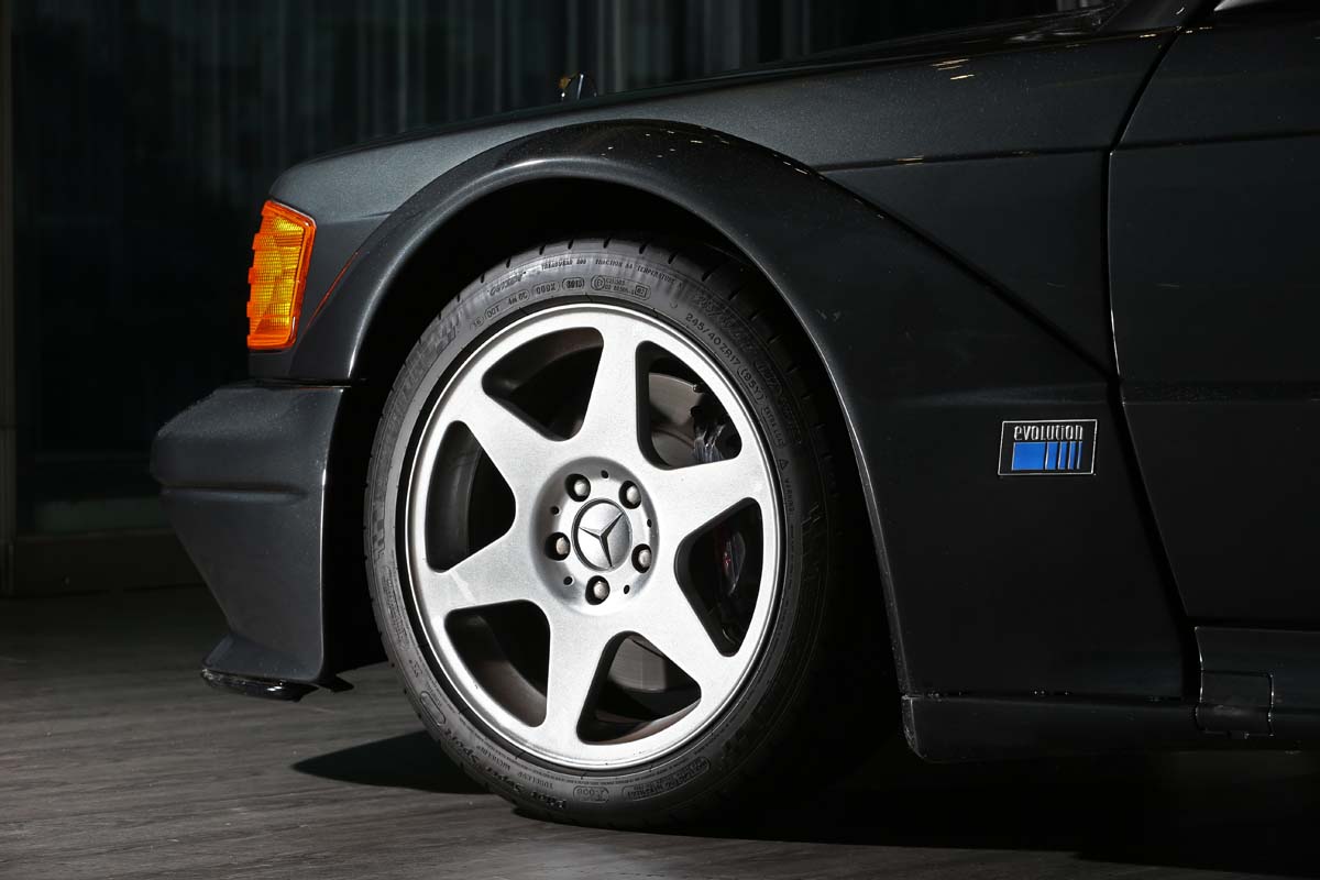 不過面對各車廠強大的競爭壓力,為延續M.Benz在DTM所創下的佳績, 1989年率先推出限量500輛的190E 2.5-16 Evolution,225hp/24.5kgm不僅獨霸車壇,搭上當時比賽的優異戰績推出後隨即銷售一空,而看準限量性能車的開發潛力,M.Benz在1990年的日內瓦車展正式推出Evolution II,企圖將190E的或熱話題成功持續下去。為了將所有馬力壓榨殆盡,因此原本四缸M 102E的引擎,透過內部壓縮比由9.7:1提高至10.5:1,加上進排氣、供油與點火調整,極為輕快的油門反應除了展現四缸引擎高轉速特殊共鳴的排氣聲浪,而幾乎所剩無幾的動力成長空間還是額外增加10hp達到235hp/7200rpm,扭力則是維持24.5kgm/5000rpm,搭配僅1340kg車重使得0-100km/h輕鬆在6.7秒內完成,加上極速直達250km/h,堪稱當年最強的四缸性能霸主,超強的性能實力確實吸引全球車迷目光,而同樣採用全球限量生產502台的飢餓手法一推出隨即造成搶購,實際能夠在路上看到的機會可能遠比身價破千萬的Hypercar還要低,然而目前全台灣能夠見到當年由總代理所引進的車款僅只有兩輛。
