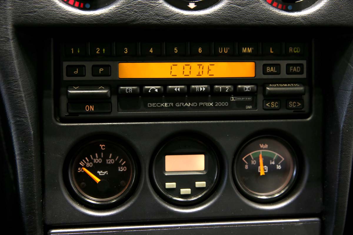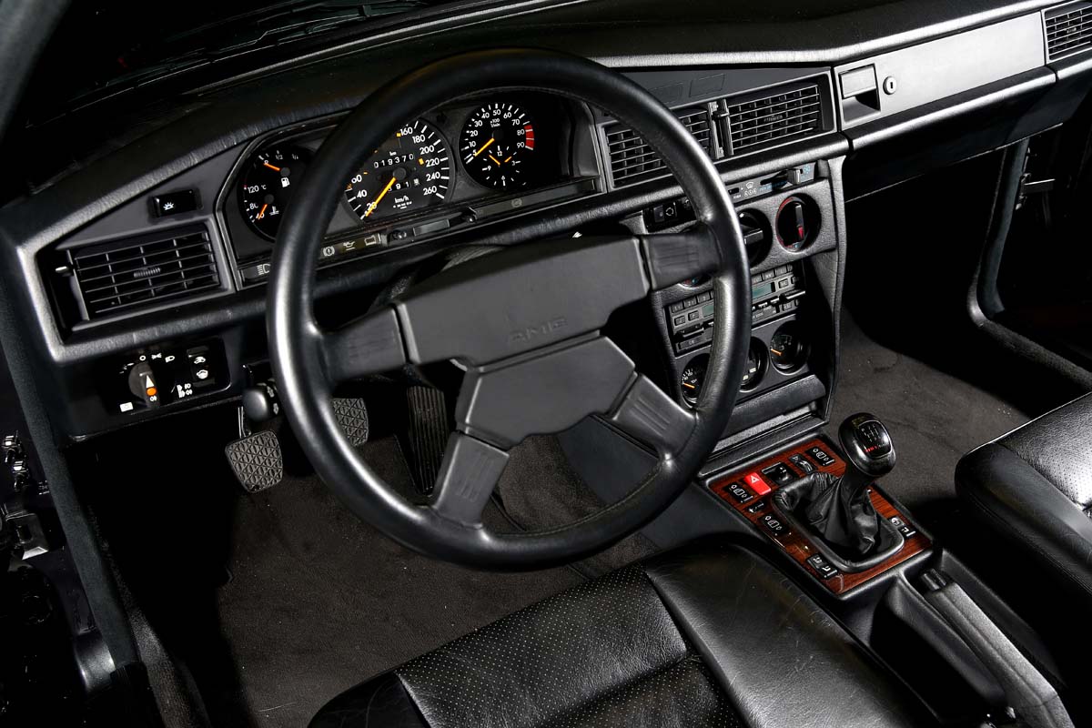 內裝設定上有別於目前傳統的三幅方向盤設計,採用Nardi四幅式方向盤與監控儀錶將座艙營造出不同的競技風格,此外看似老舊的內裝設計其實還暗藏極為先進的高科技,原廠特別設計的電子液壓懸吊控制系統(SLS),可讓駕駛輕鬆在排檔座旁控制鈕進行車身高度控制,而高達20cm高度調整不但有利於一般道路行駛,即使在賽道上也能降低車身重心以利操控表現,原來電子高低可調懸吊早在1990年前就已開始量產使用。