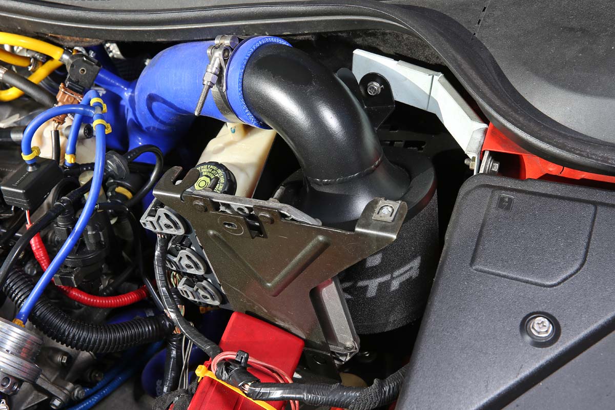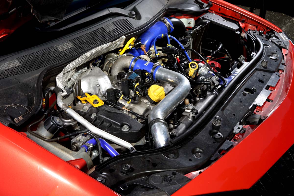 而動力方面也因為是渦輪增壓引擎有利於性能提升,因此目前Tuner透過香菇頭以增加引擎進氣量,同時排氣管也改為鈦合金材質,除了能夠降低重量,當引擎高轉速時則有利於馬力的釋放,不過為了有效控制進氣溫度以利馬力輸出,藉由加大Intercooler則是第一階段提升,未來若是未來若是面對更為激烈的競賽操駕勢必可能就要增加水噴射來降溫,最後則是進行ECU程式初階撰寫,小幅度將最大馬力提升至250hp。