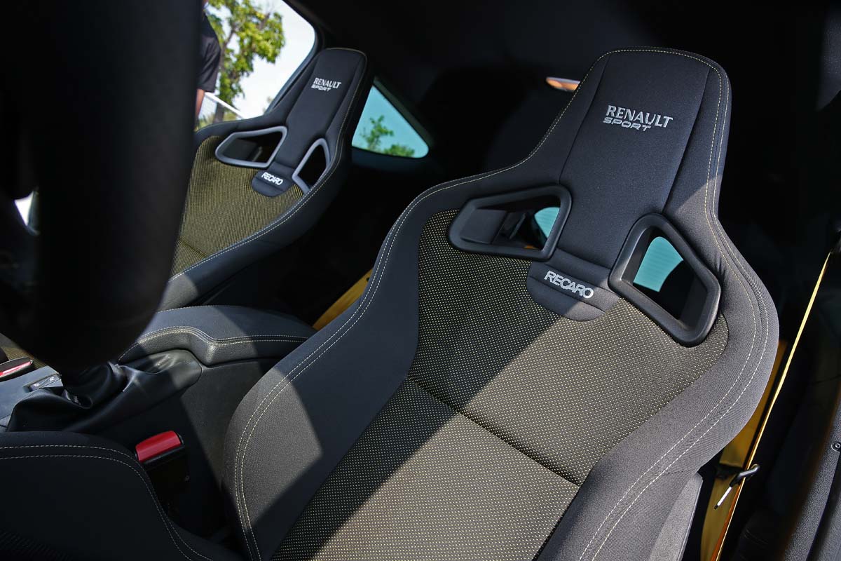 | 包覆性極佳的Renault Sport可調賽車椅不僅是由Recaro代工而已,採用黑底鋪陳搭配黃色,視覺效果更是讚。 |