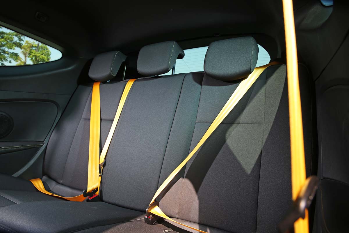| 既然是性能車,內裝當然也要有更活潑的配色,而採用黃色的安全帶讓人看到就想找台灣廠商Raemco幫忙來升級一下。 |