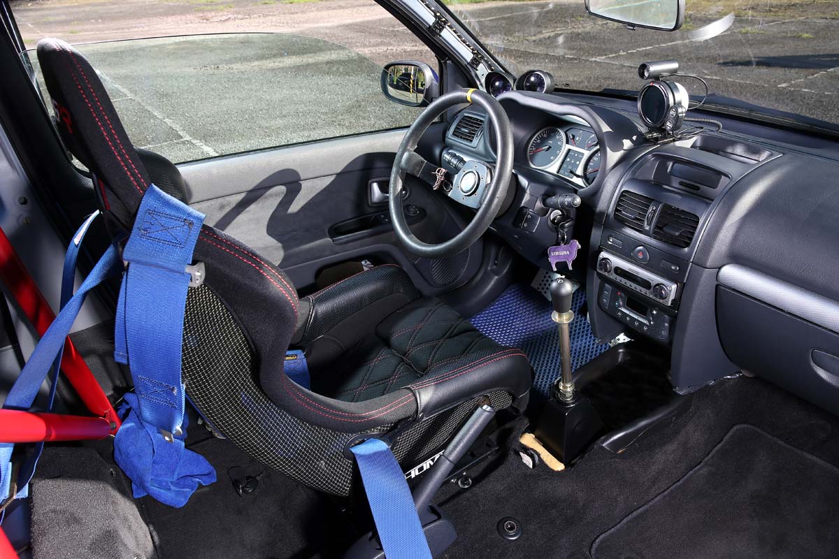 由於172hp最大馬力並沒有太多優勢,既然動力並沒有提升,那還不如減輕車重來強化性能,為此除了廢除兩張原廠座椅,並且更換輕量化賽車桶椅減重約30公斤,同時車內不必要的內飾板與後座均全部移除,雖然有半套防滾籠的重量負擔,但實際約能減重達50公斤讓操控更輕盈靈敏。