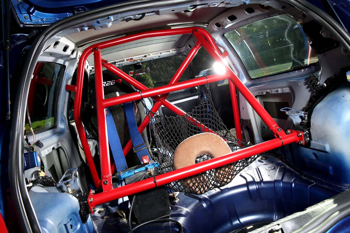 | 後半座加上的半套防滾籠不僅大幅提升車體剛性,同時也提高座艙安全性。 |